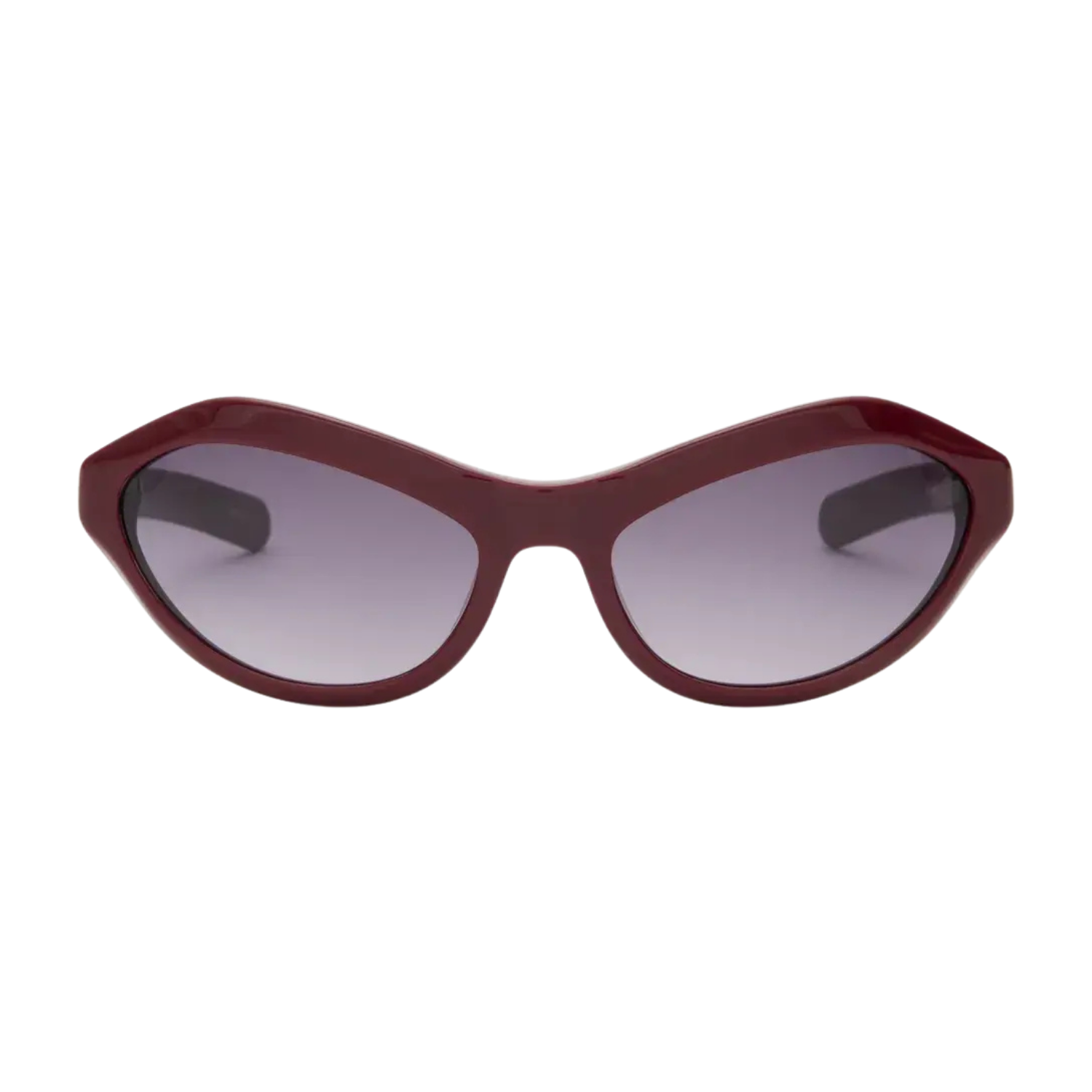 The Akiwa sunglasses feature a burgundy frame crafted from 100% handmade Italian Mazzucchelli acetate. The grey gradient Carl Zeiss lenses provide UVA/UVB protection. Designed for durability, the sunglasses include stainless steel, nickel-free OBE hinges with silicone safety screws.