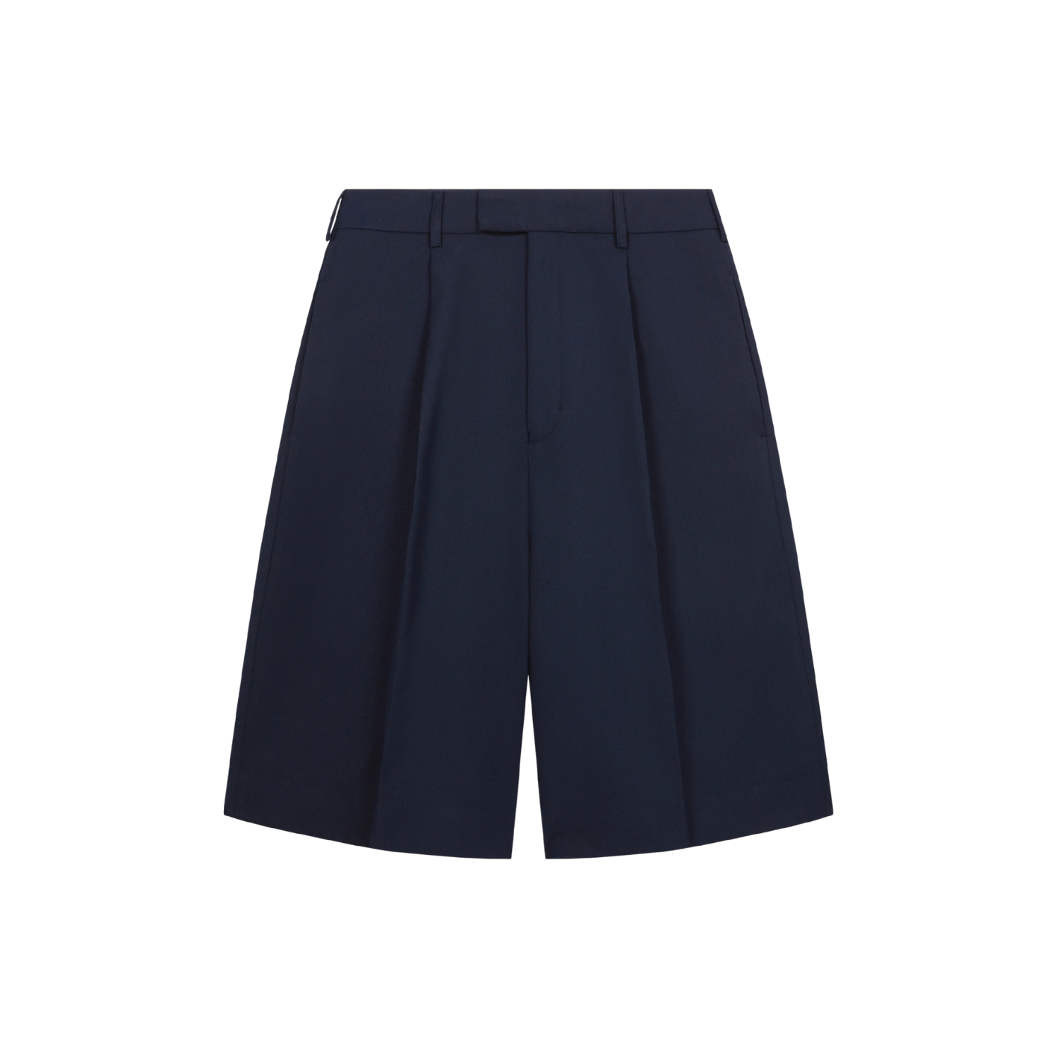 A 280GSM twill study in laid-back summer tailoring with an element of stretch from viscose and elastane designed into the fabric for extra comfort. These shorts are cut to an A-line silhouette with wide, press-pleated legs and feature a signature : embroidery accents on the back right pocket.
