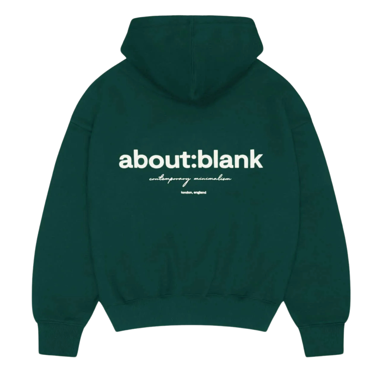 The a:b box hoodie is made from 520GSM loopback-cotton jersey. It is cut with dropped shoulders and a cropped hem to create a boxy, laid-back silhouette. It features puff print about:blank branding across the back and a smaller brand signature on the front.
