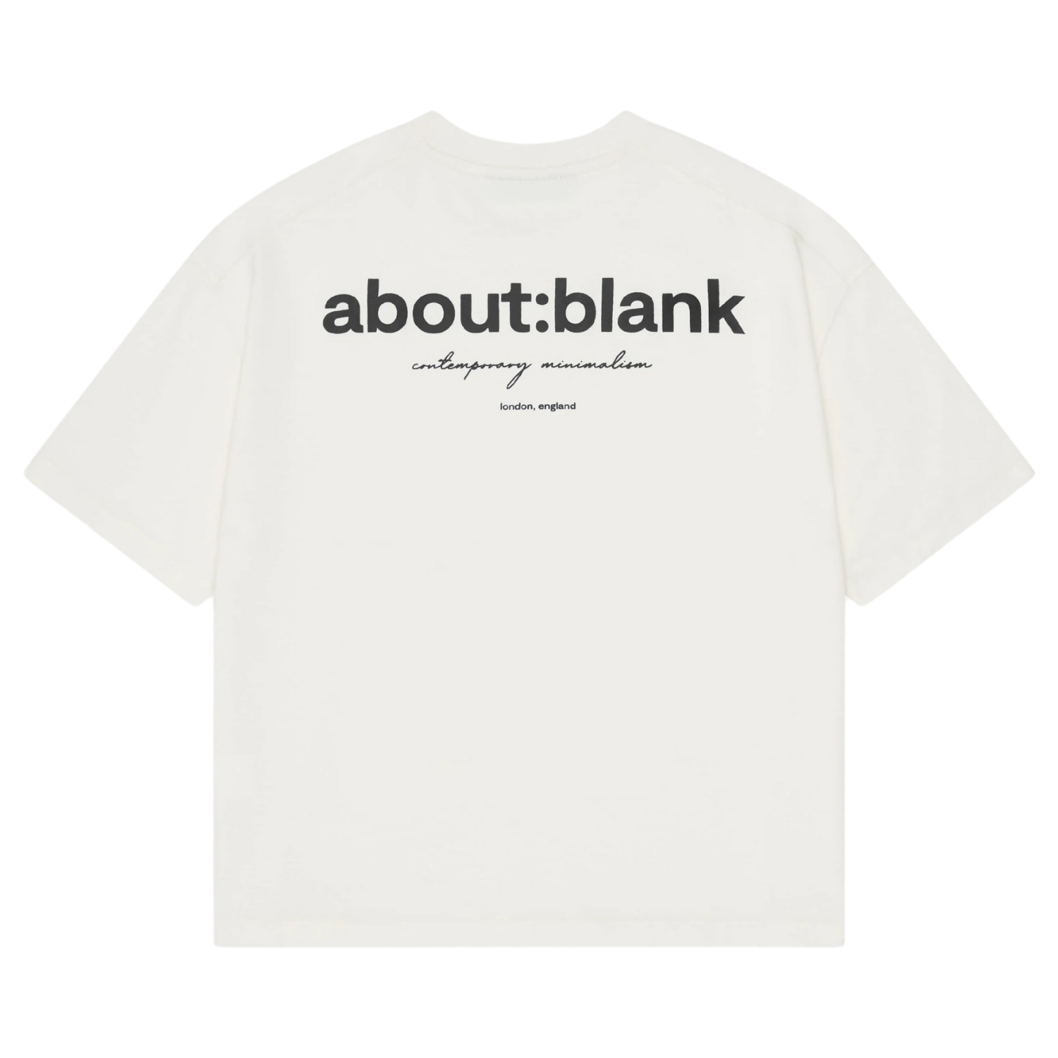 This tee is cut from the brand signature 340gsm cotton jersey to ensure a structural fit. The tee has an oversized silhouette with dropped shoulders and a ribbed crewneck and features about:blank branding in puff print across the back of the shoulders.