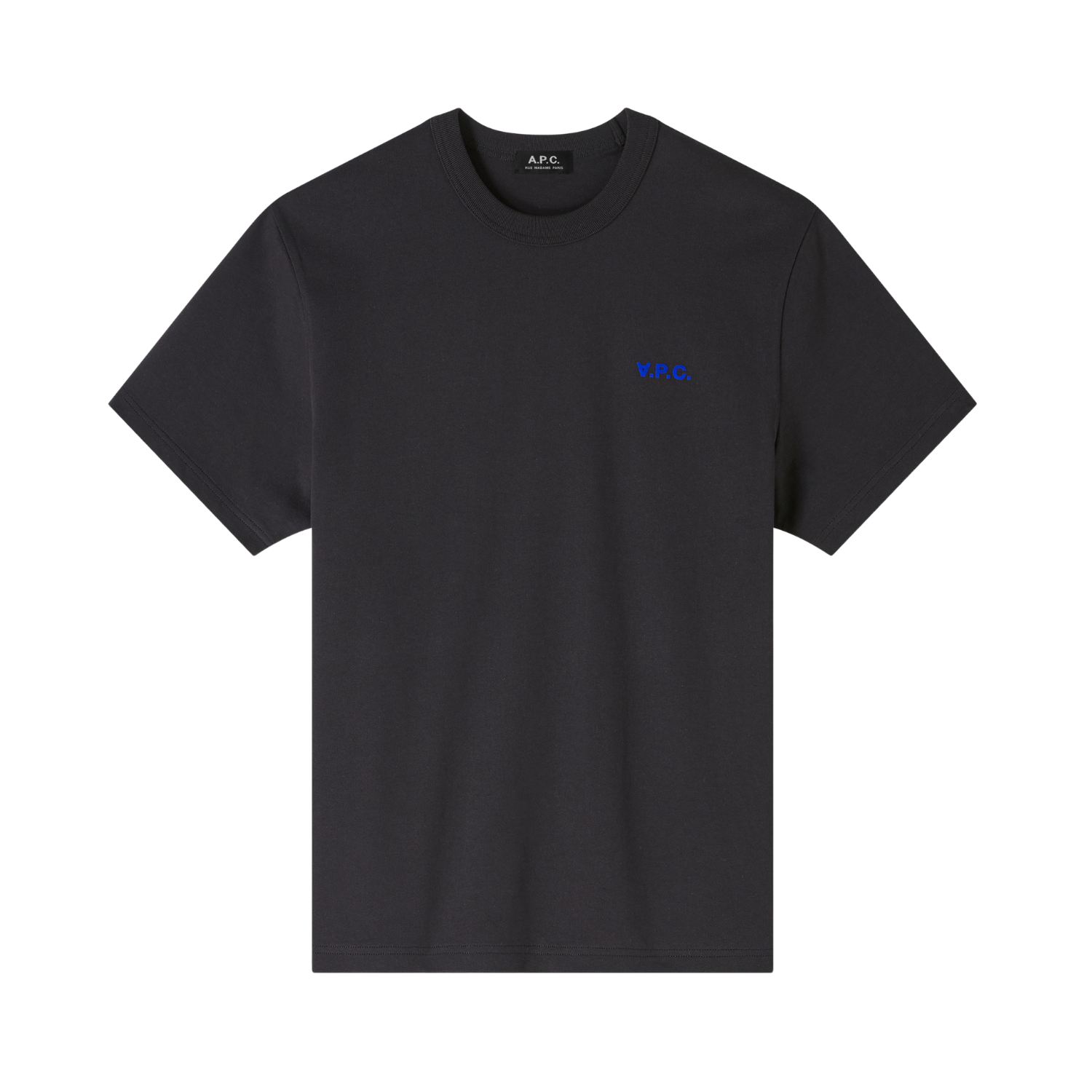 Black T-shirt in organic cotton with a small blue V.P.C. logo over the heart.