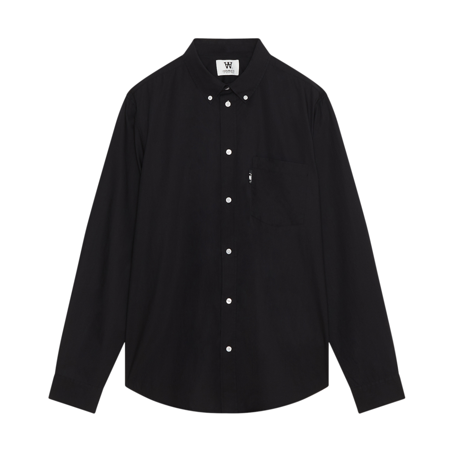 Classic fit shirt in 100% organic cotton, GOTS certified, poplin. Shirt has buttondown collar and chestpocket with seasonal black and chrome Double A flaglabel.