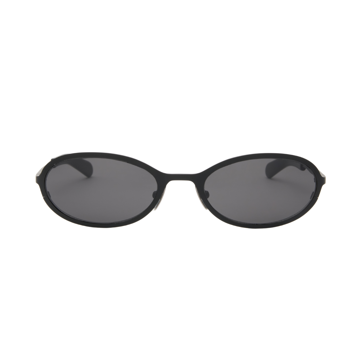 Cohen sunglasses feature a sleek and modern design with a minimalist aesthetic. The frame is crafted from matte black metal, giving it a polished yet understated look. The oval-shaped lenses are complemented by slim metal arms, black acetate tips for added comfort and secure wear.