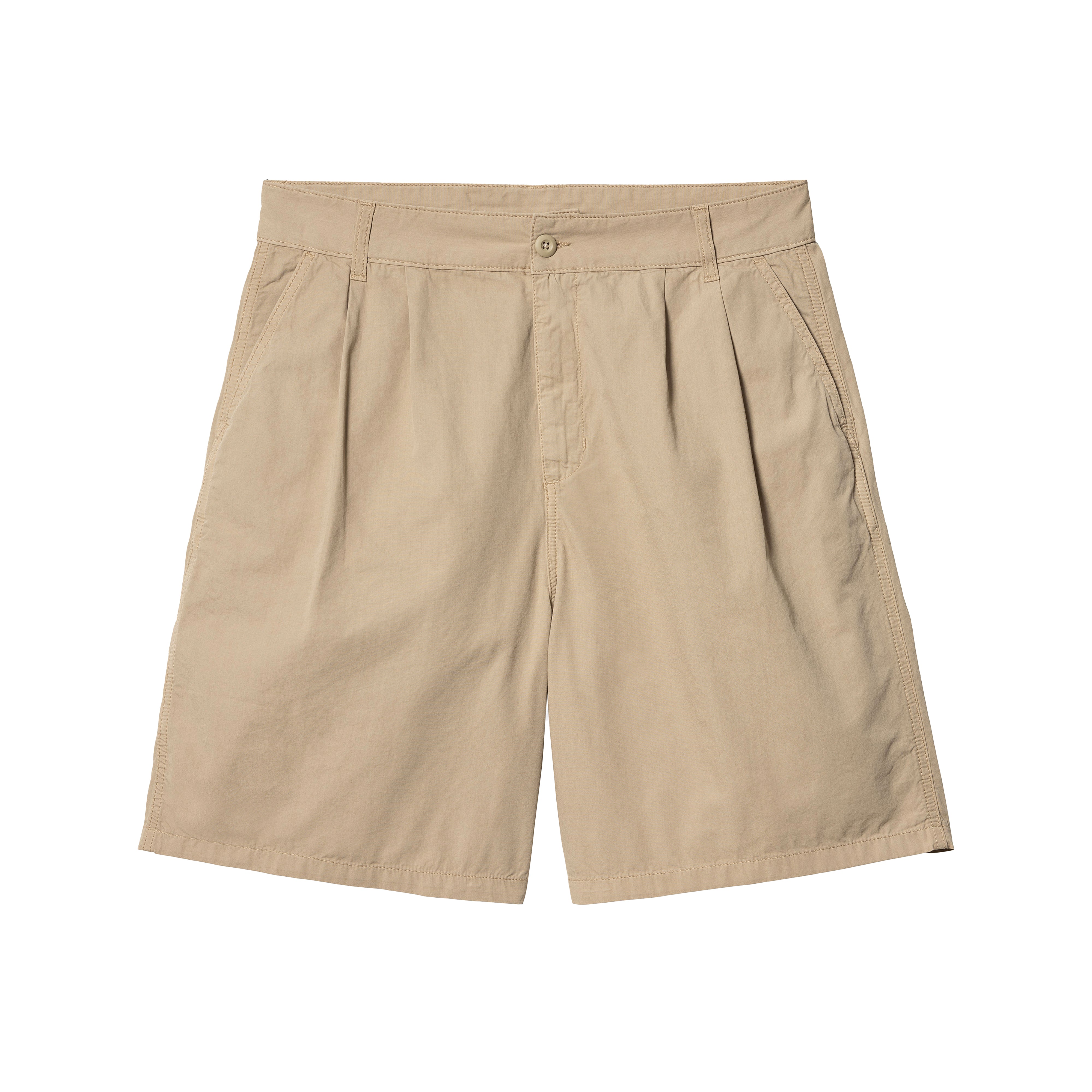 The Colston Short is made in a loose fit with a regular waist from Dothan poplin, which is a lightweight cotton fabric. The item has also been stone-washed, resulting in a softer feel and lightly worn-in appearance. It is detailed with two front pleats, as well as two side pockets, a rear pocket, and an additional welt pocket on the left leg. A woven Square Label appears on the rear.