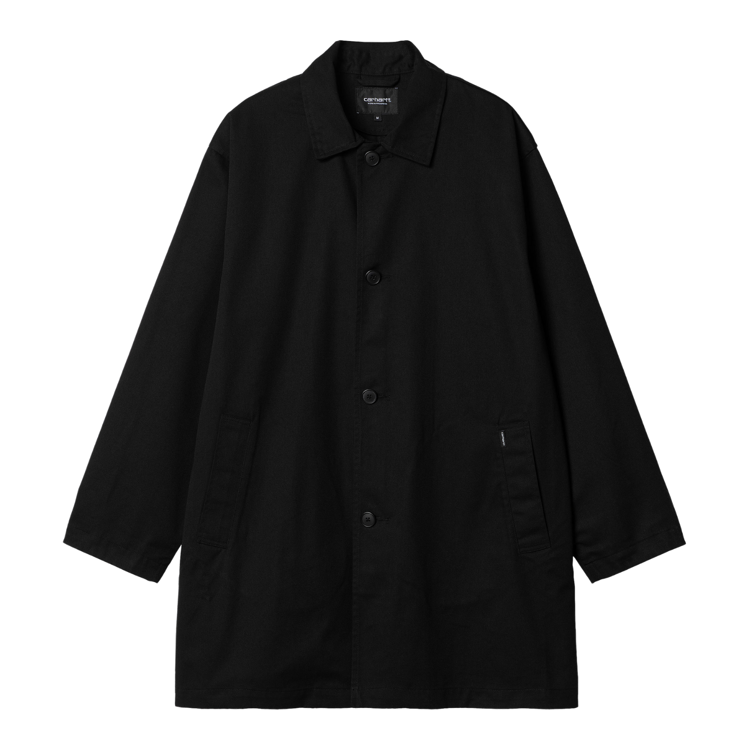The Newhaven Coat is inspired by a classic car coat silhouette and is constructed from midweight, poly-cotton twill. The item is also unlined. It features a collar, a buttoned front, and two welt pockets. A woven flag label completes the design.