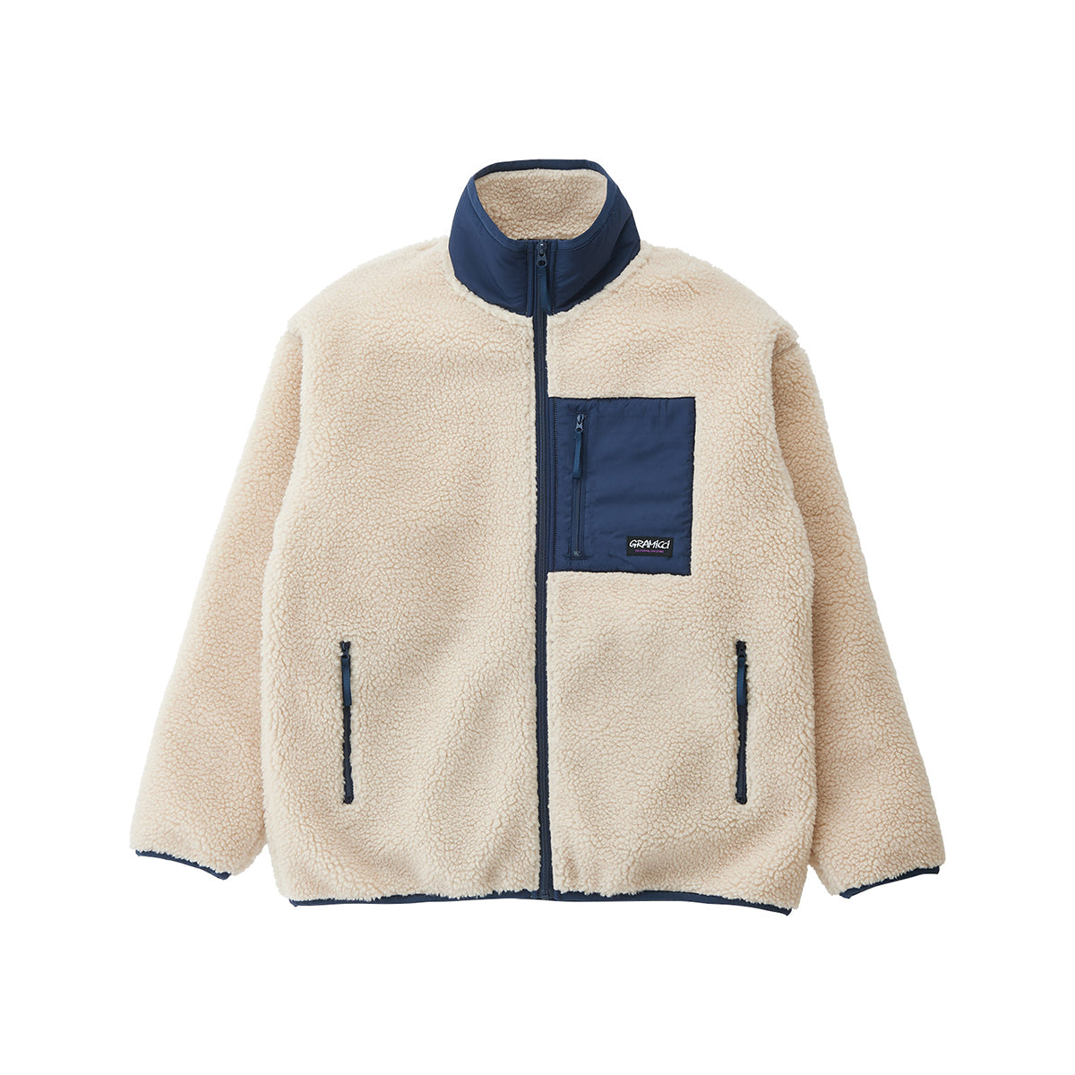 Gramicci's Sherpa Jacket is sheepishly fuzzy, voluminous, and warm, and comes in two swirl colors with an original jacquard weave pattern and two solid colors. The collar edge, cuffs, and hem are designed with stretch binder tape to reduce wind penetration, making this a great outdoor jacket. This is a great jacket for storage, as there are zippered pockets on both sides and the left chest. This warm Sherpa Jacket features a stand-up collar, and the pocket lining is made of mesh.