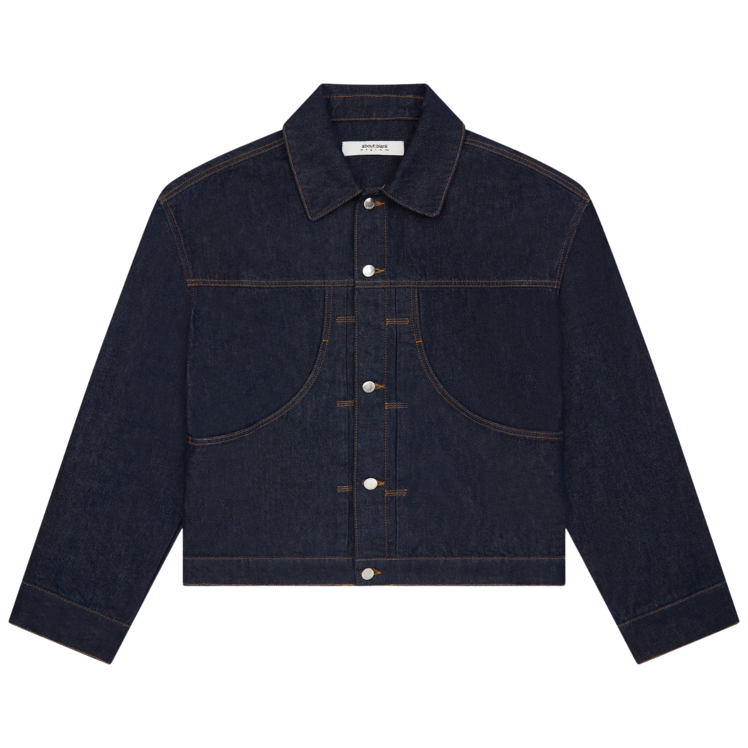 The denim jacket is cut from 14oz denim. The jacket is cut to an oversized, boxy silhouette with dropped shoulders and twin needle feature pockets at the chest.