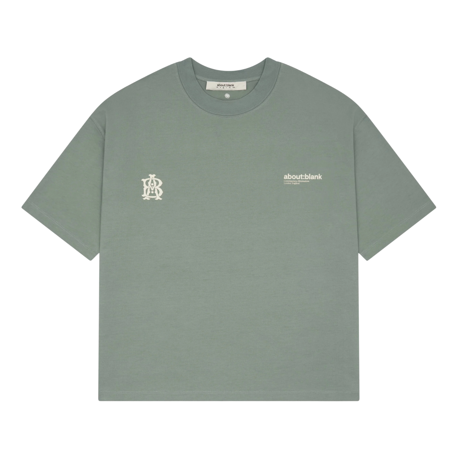 A heavyweight 340gsm cotton tee with a 3.5cm mock neck, contrast raised screen print across the chest, and tonal colon embroidery at the back neck. Built on their signature cropped and boxy block with twin-needle finishing and no visible topstitching at the side seam for a cleaner silhouette.