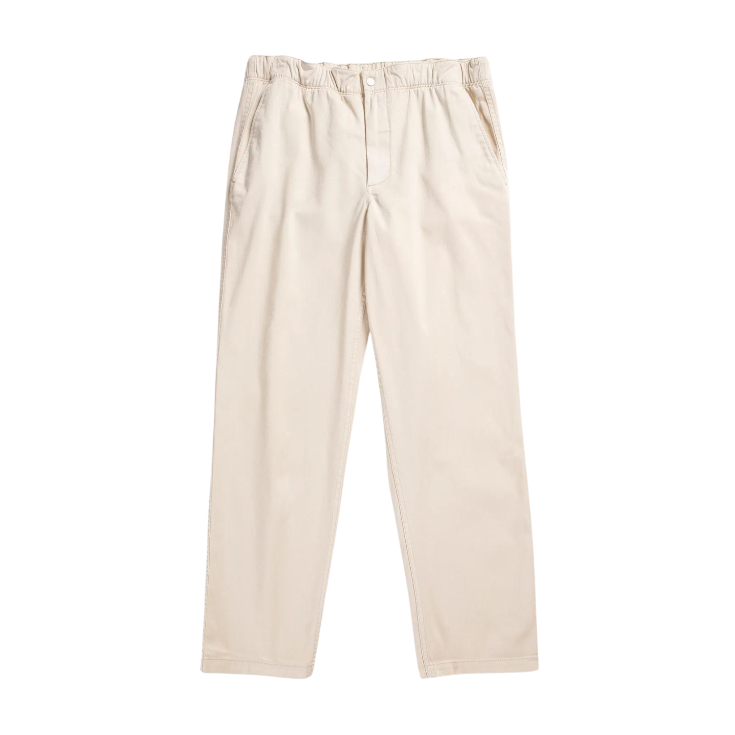 The Ezra Light Stretch is a relaxed fitting pant with a loose leg constructed from stretch organic cotton twill. The pants are garment-dyed for a rich colour. Finished with a zip fly, snap closure and drawstring waist.