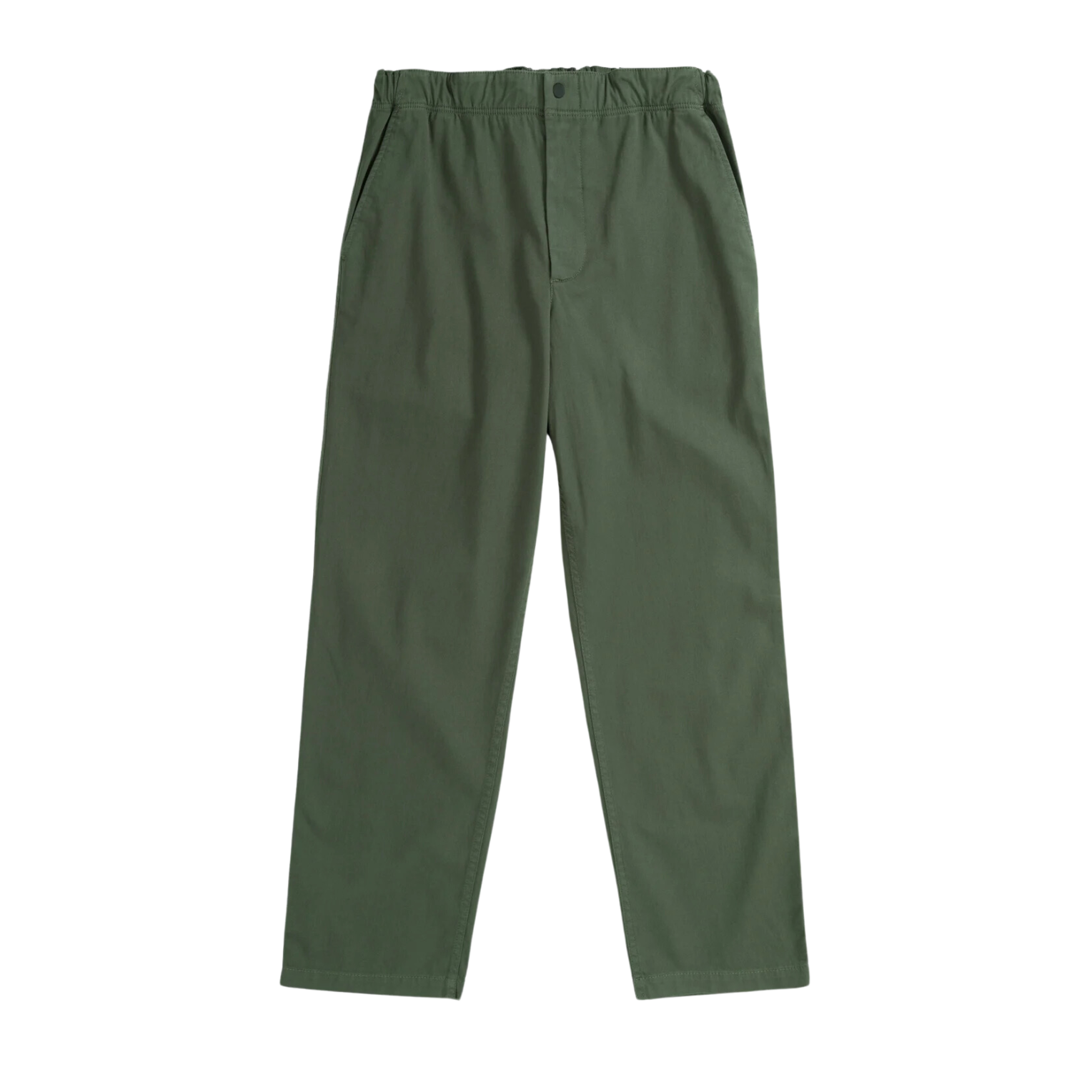 The Ezra Light Stretch is a relaxed fitting pant with a loose leg constructed from stretch organic cotton twill. The pants are garment-dyed for a rich colour. Finished with a zip fly, snap closure and drawstring waist.