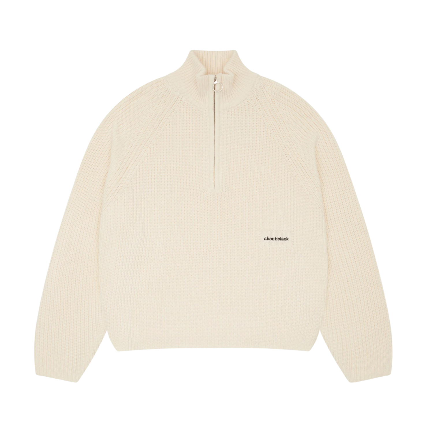 A funnel neck knit built from 100% cotton in a 5-gauge half cardigan stitch. Features a concealed half-zip closure, raglan sleeves, and a clean edge finish at the cuff.