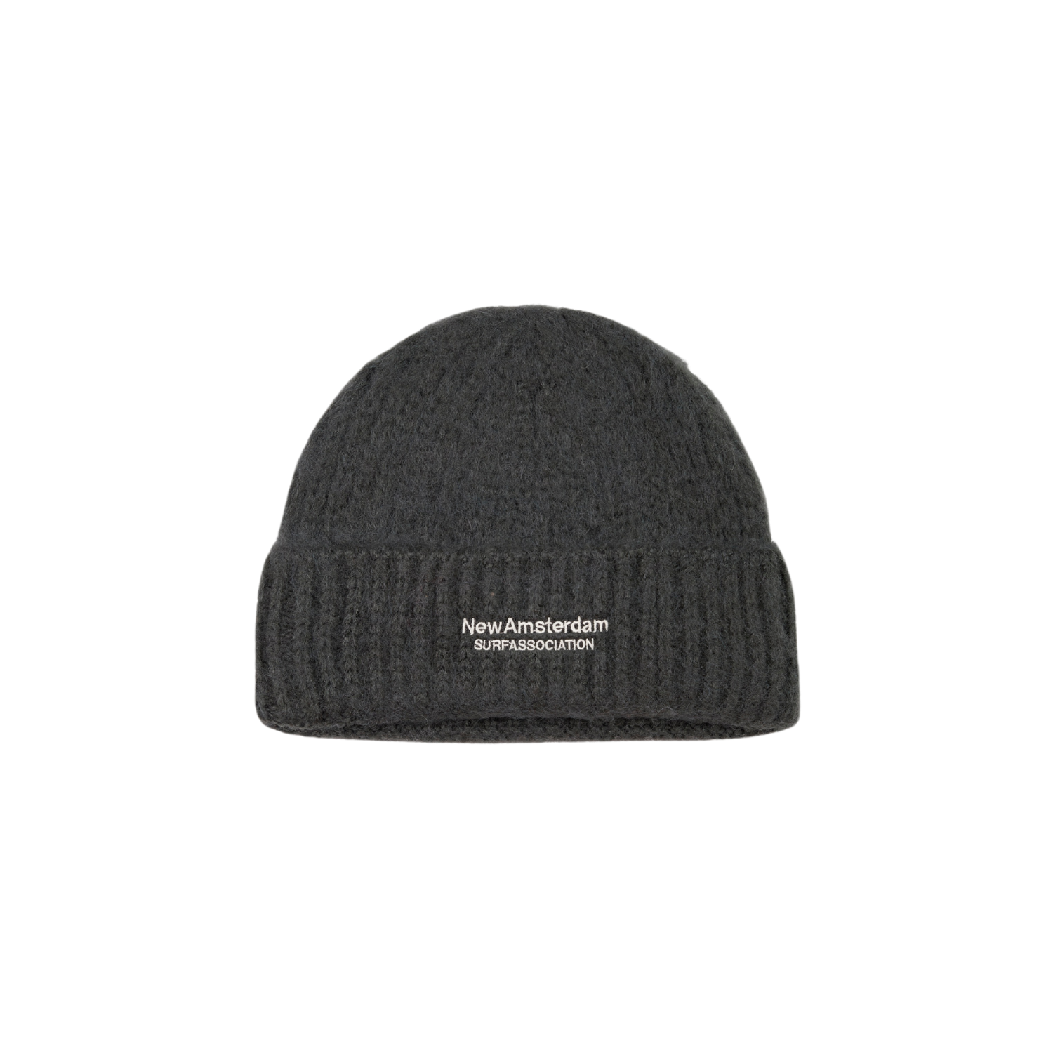 A beanie from New Amsterdam Surf Association made from a soft and warm rib-knit acrylic with a turned cuff and an embroidered logo to the front. Fits a bit larger, like an oversized fisherman beanie.