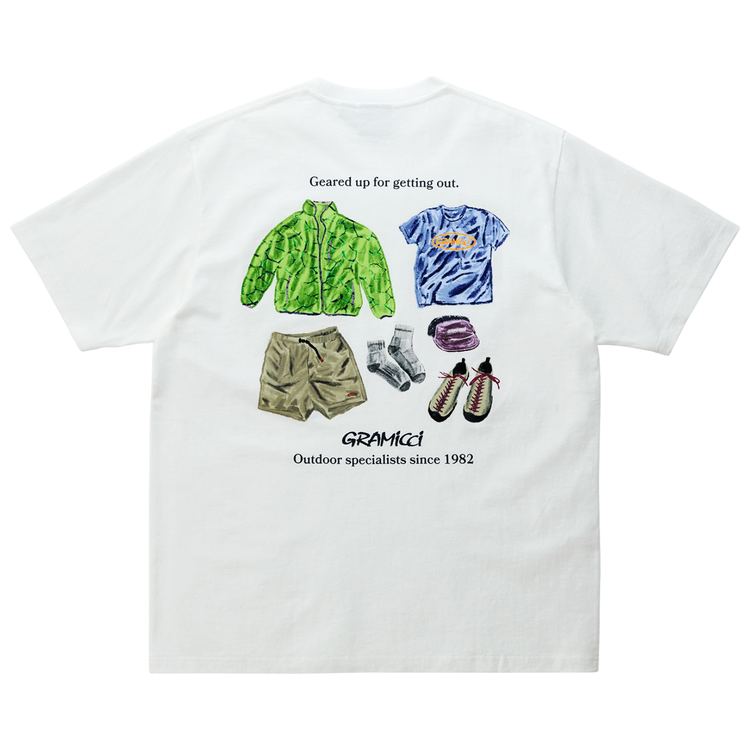 The Gramicci Geared Up Tee celebrates the essential tools of the climbing trade with a whimsical twist. This mid-weight jersey tee features our charming illustration of climbing equipment that any seasoned climber will recognize. Crafted from eco-conscious cotton, it has the perfect weight for both active days and casual wear. The playful graphic showcases different pieces of climbing gear with a cartoon-style touch, making it a fun addition to any climber's wardrobe. Whether you are at the crag or in the city, this tee keeps things light while paying homage to the gear that keeps climbers moving upward.