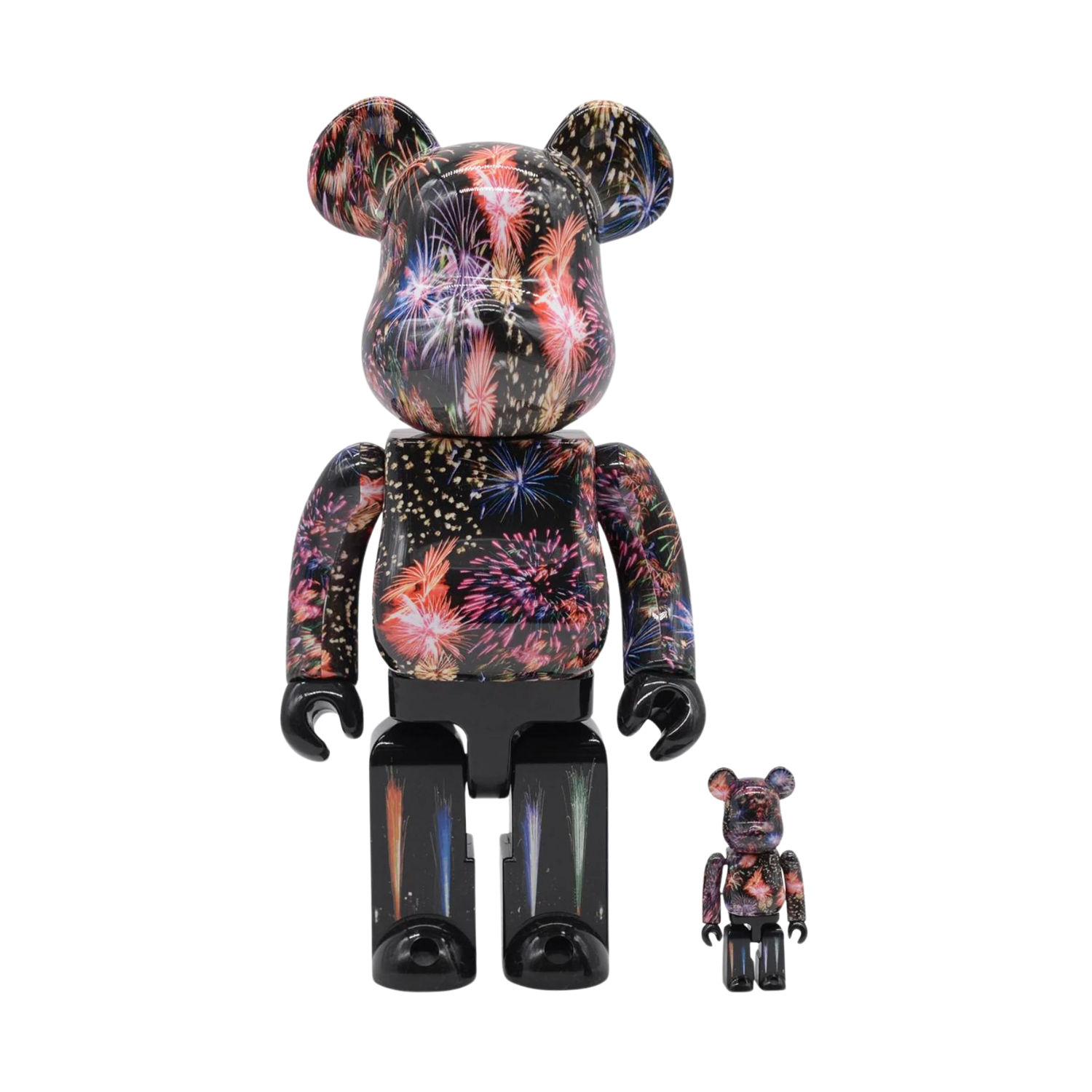 Coming in sizes 100% and 400%, the figures are a nod to summer festivities in Japan. Printed over a glossy black base, vivid hues of Japanese firework explosions cover all of the head, and upper body, which includes the arms and belly, stopping just at the hand. On the legs are tall vertical sparks that depict the motion of fireworks shooting up. Finishing off the design is subtle branding found behind the right foot, “©2019 Medicom Toy,” marking the figures as yet another collector’s set from the toy maker’s expansive portfolio.