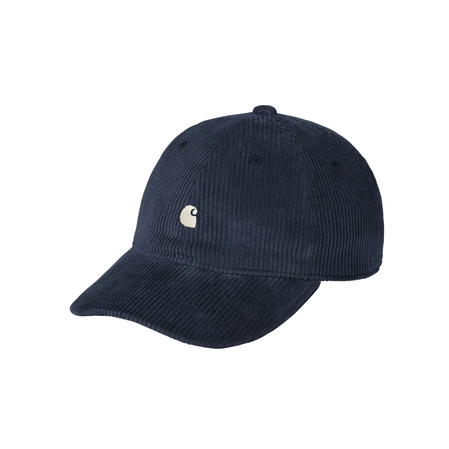 The Harlem Cap is an unlined six-panel style with a firm, curved peak. It is constructed from eight wale cotton corduroy, meaning the ridges in the fabric are of a wide thickness. It also features an adjustable strap to ensure a perfect fit and is finished with an embroidered Carhartt WIP 'C' Logo on the front.