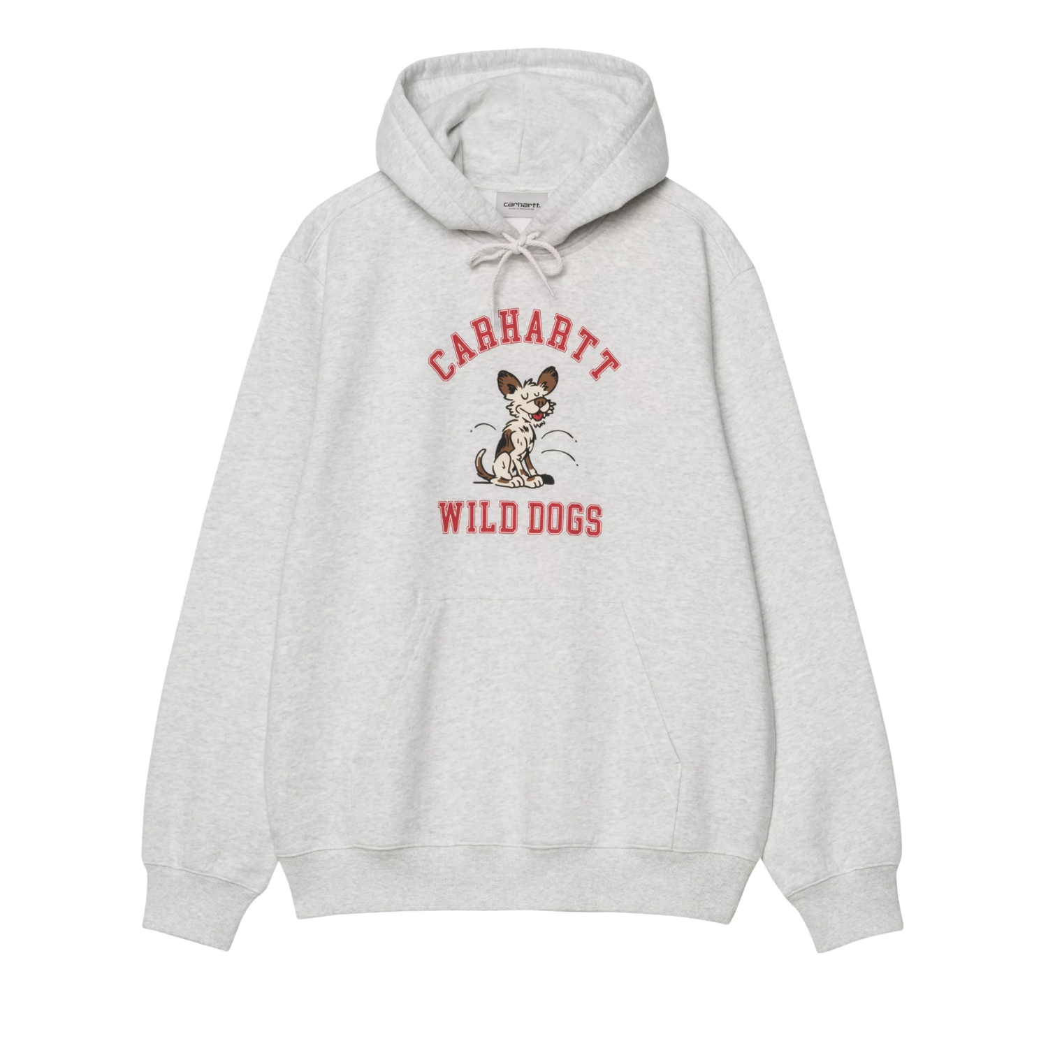 The Hooded Wild Dog Sweatshirt is made in a loose fit from heavyweight cotton jersey with an unbrushed, tactile loopback construction. The style features an adjustable hood and a kangaroo pocket. A graphic print appears on the front.