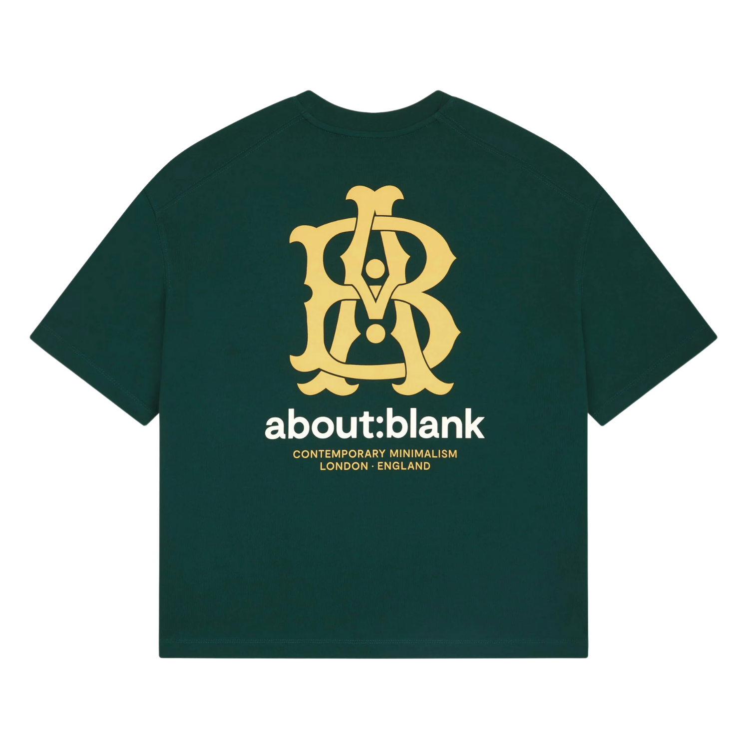 The insignia tee is cut in their signature 340gsm cotton jersey and features dual raised screen prints - about:blank's monogram motif at the back and stacked branding across the front. The micro-rib collar and dropped shoulder shape keep the fit boxy and structured, while tonal edge-stitching and flat seams create a clean finish.