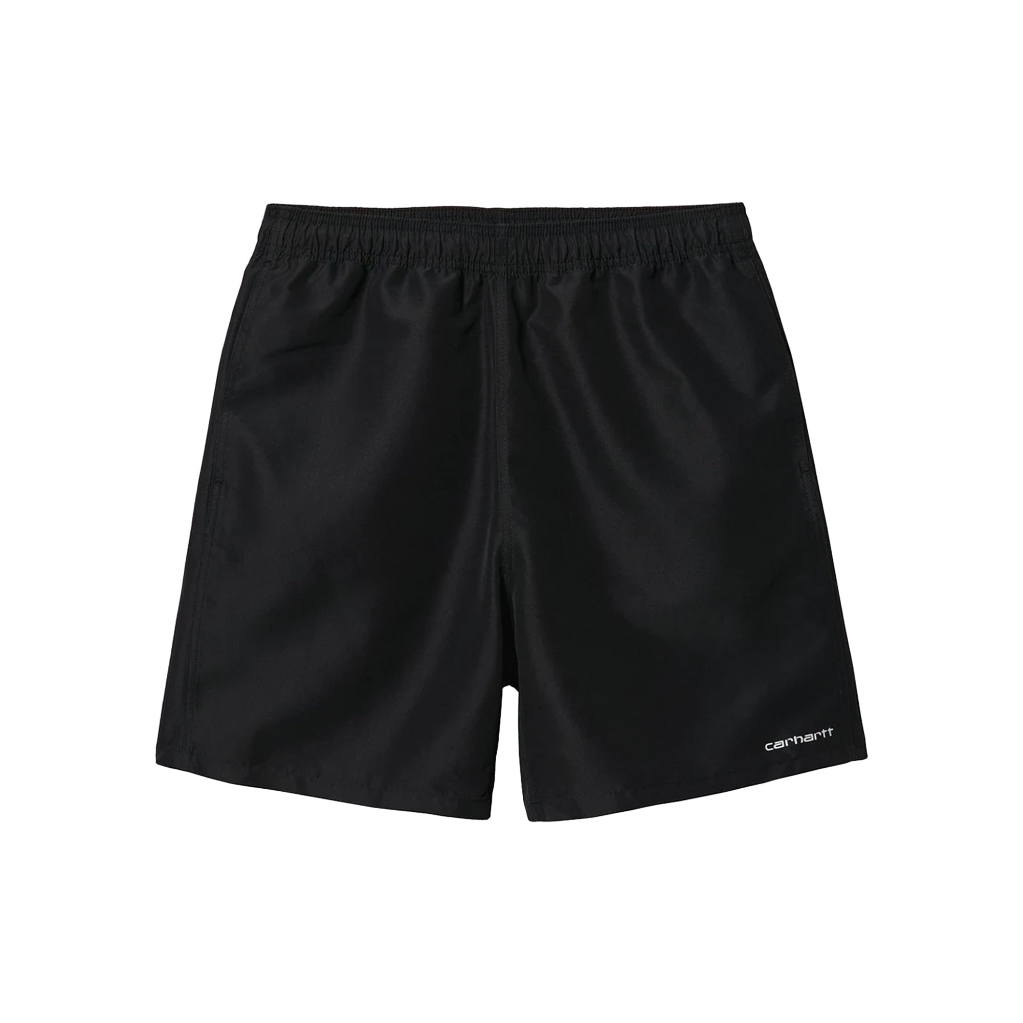 The Island Swim Trunk is created from a lightweight polyester weave. The garment is unlined. It also features an adjustable waistband with drawcord, side seam pockets, and a key holder in the zippered back pocket.