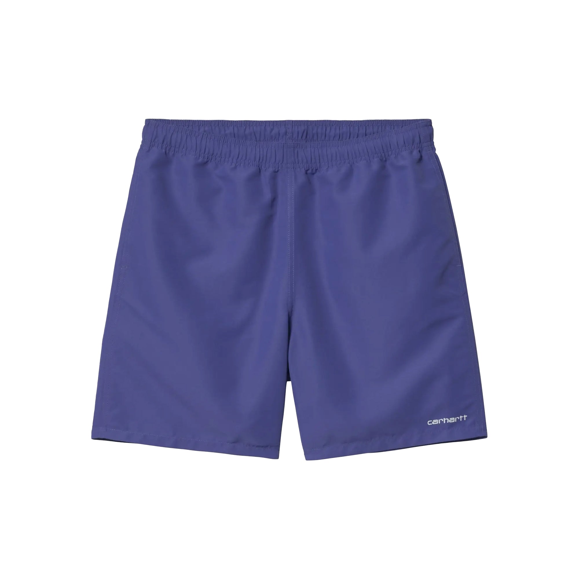 The Island Swim Trunk is created from a lightweight polyester weave. The garment is unlined. It also features an adjustable waistband with drawcord, side seam pockets, and a key holder in the zippered back pocket.