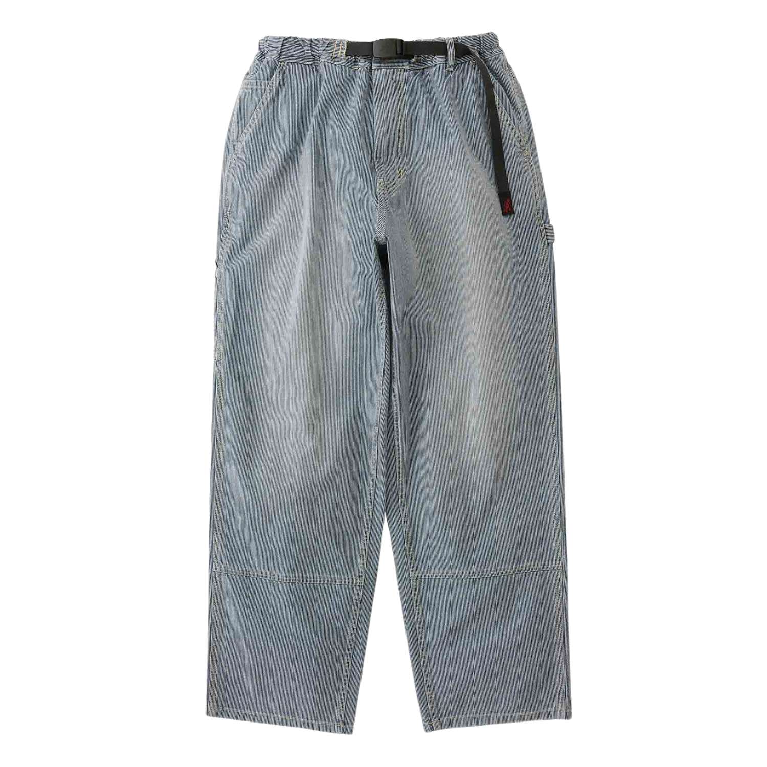 The Japanese Hickory Denim Work Pants are a relaxed pair of painter pants made from hickory cotton. Hickory denim has been used for workwear since the 19th century, so-called because it’s ‘as strong as hickory wood’. It’s long been a favorite for railroad gear, still worn in freight yards to this day. Our hickory has been woven by the legendary Kaihara mill in Japan, and at 8oz is reassuringly tough, whilst still light enough for everyday summer-wear. Combine that with plenty of pockets and a comfortable, roomy shape and you’ve got a particularly wearable pair of work-pants.