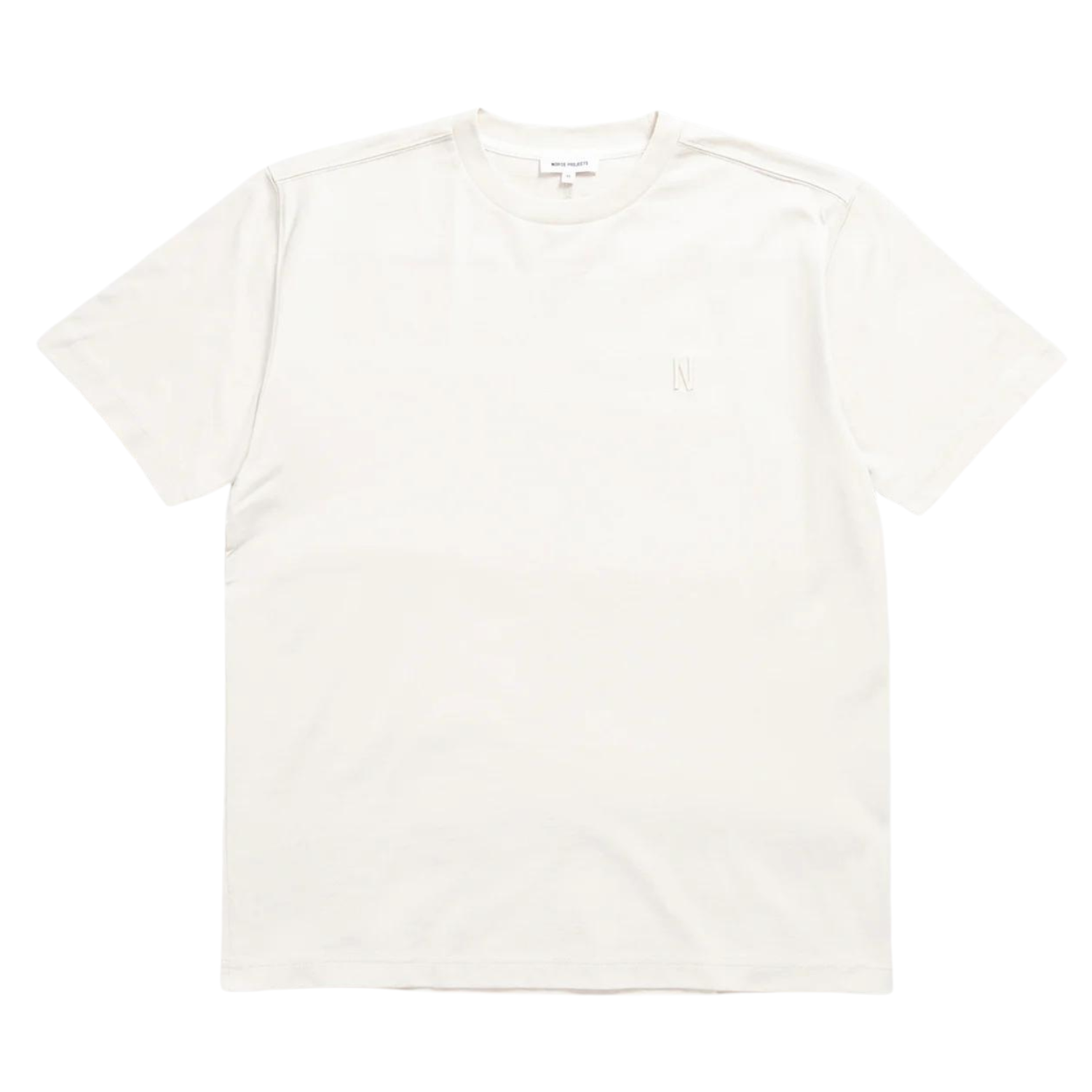 A boxy fitting t-shirt cut from a 180 GSM jersey. The style features a tonal embroidered N at the chest, ribbed collar, a yoke detail in the back and twin needle stitching details.
