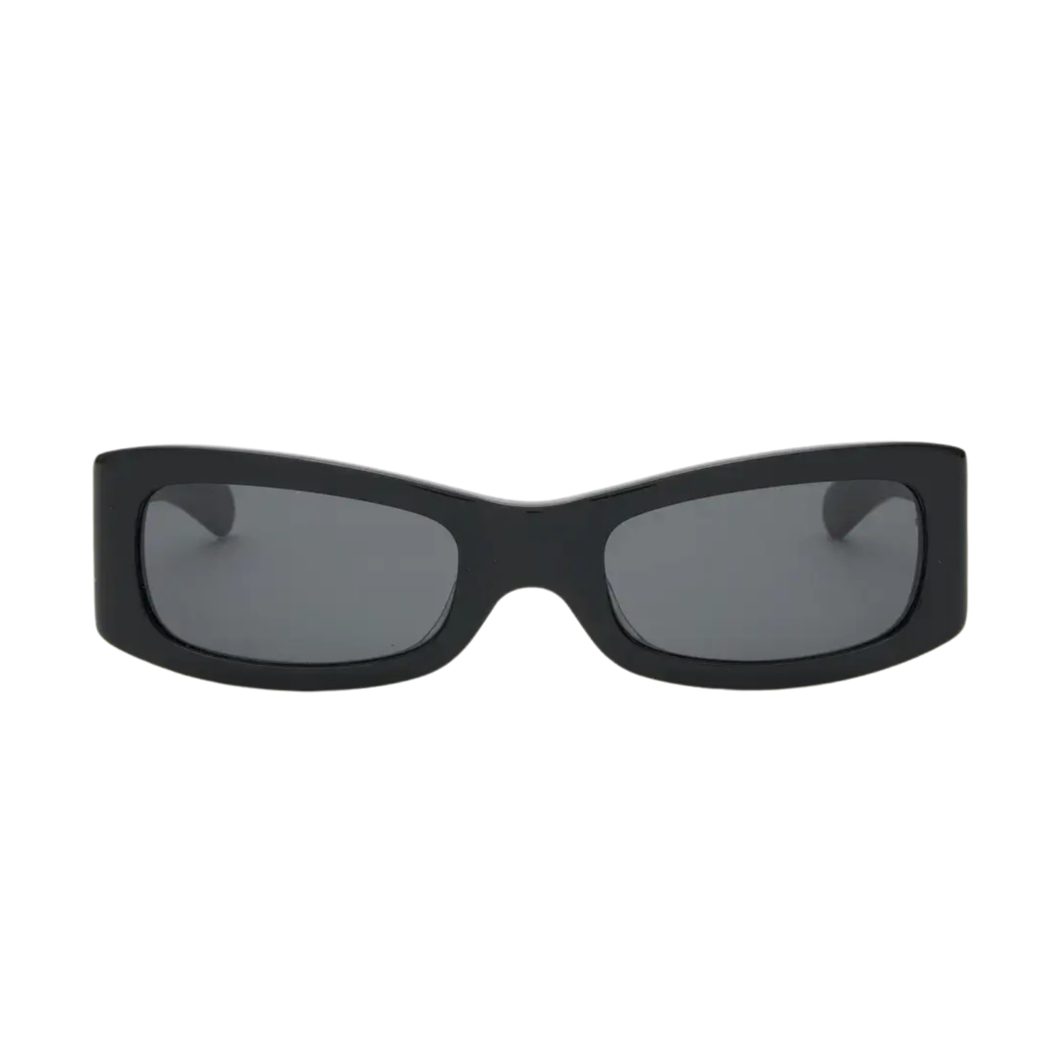 The Kareem sunglasses feature a black frame crafted from 100% handmade Italian Mazzucchelli acetate. The solid black Carl Zeiss lenses provide UVA/UVB protection. Designed for durability, the sunglasses include stainless steel, nickel-free OBE hinges with silicone safety screws.