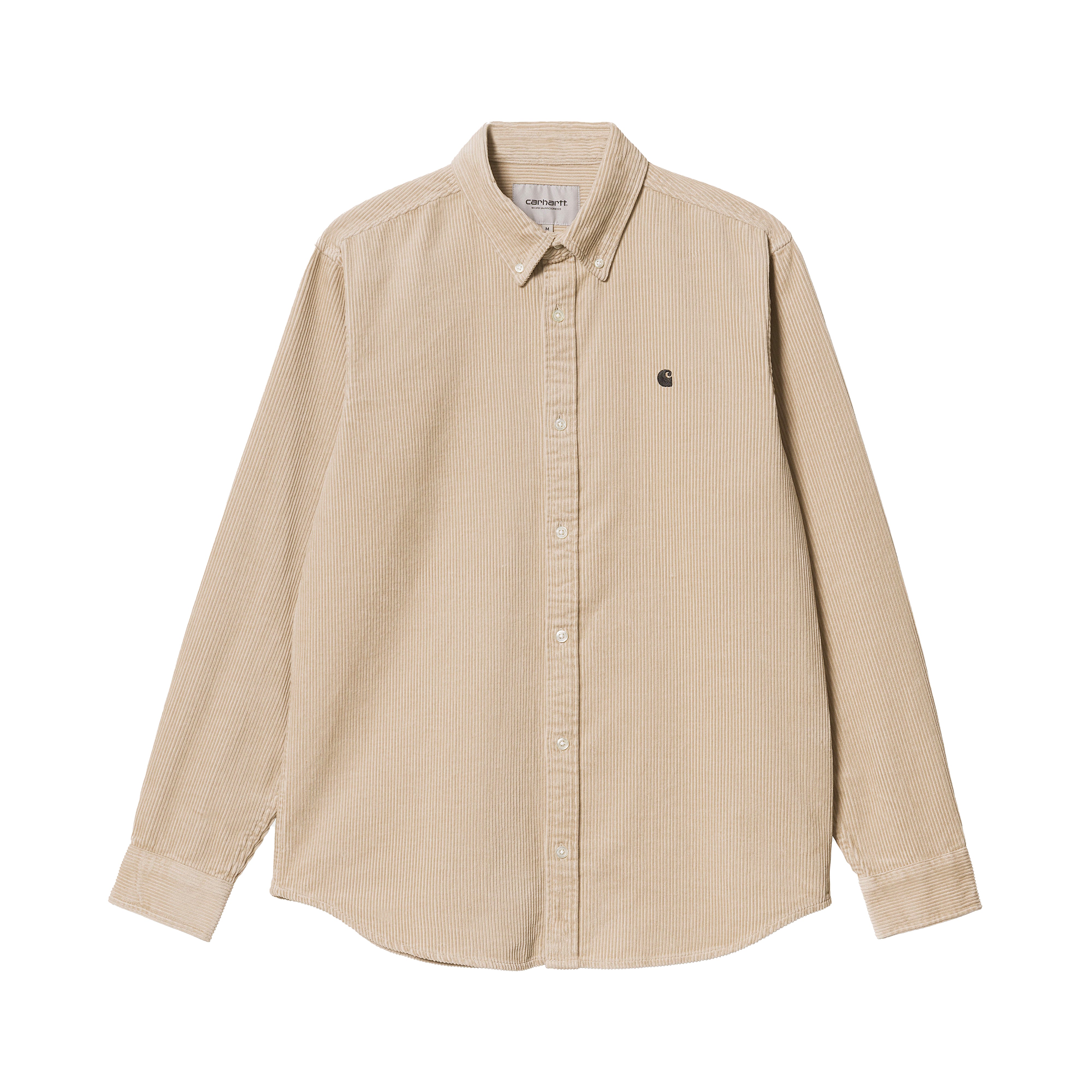 The L/S Madison Fine Cord Shirt is a classic button-down shirt constructed from a midweight 16 wales cotton corduroy. The number of wales denotes how chunky the ridges of the corduroy fabric is, with 16 being very fine. This item has been garment washed for a softer feel, and is finished with an embroidered Carhartt WIP C Logo on the left chest. Curved hem and button down collar.