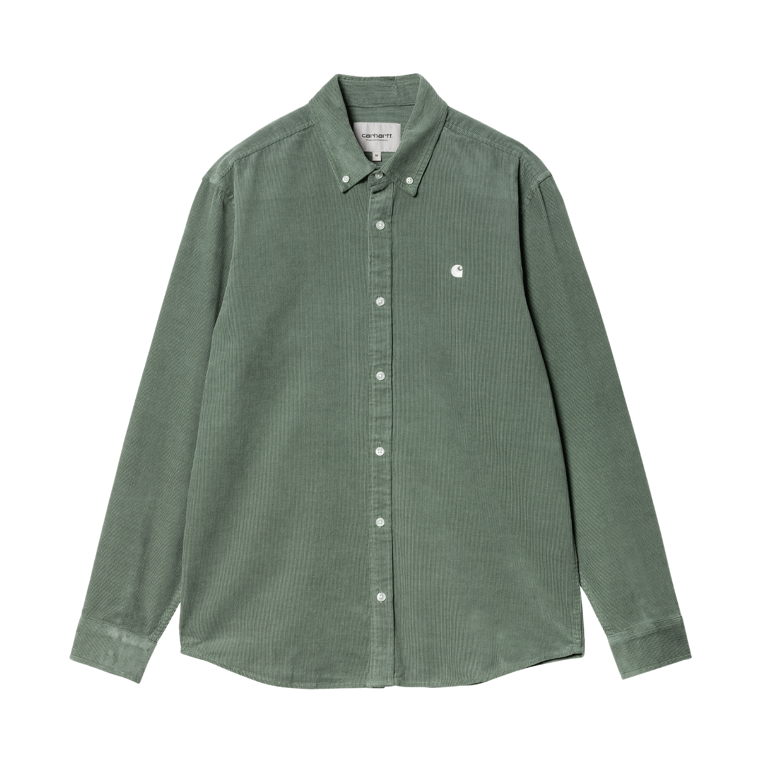 The L/S Madison Fine Cord Shirt is a classic button-down shirt constructed from a midweight 16 wales cotton corduroy. The number of wales denotes how chunky the ridges of the corduroy fabric is, with 16 being very fine. This item has been garment washed for a softer feel, and is finished with an embroidered Carhartt WIP C Logo on the left chest. Curved hem and button down collar.