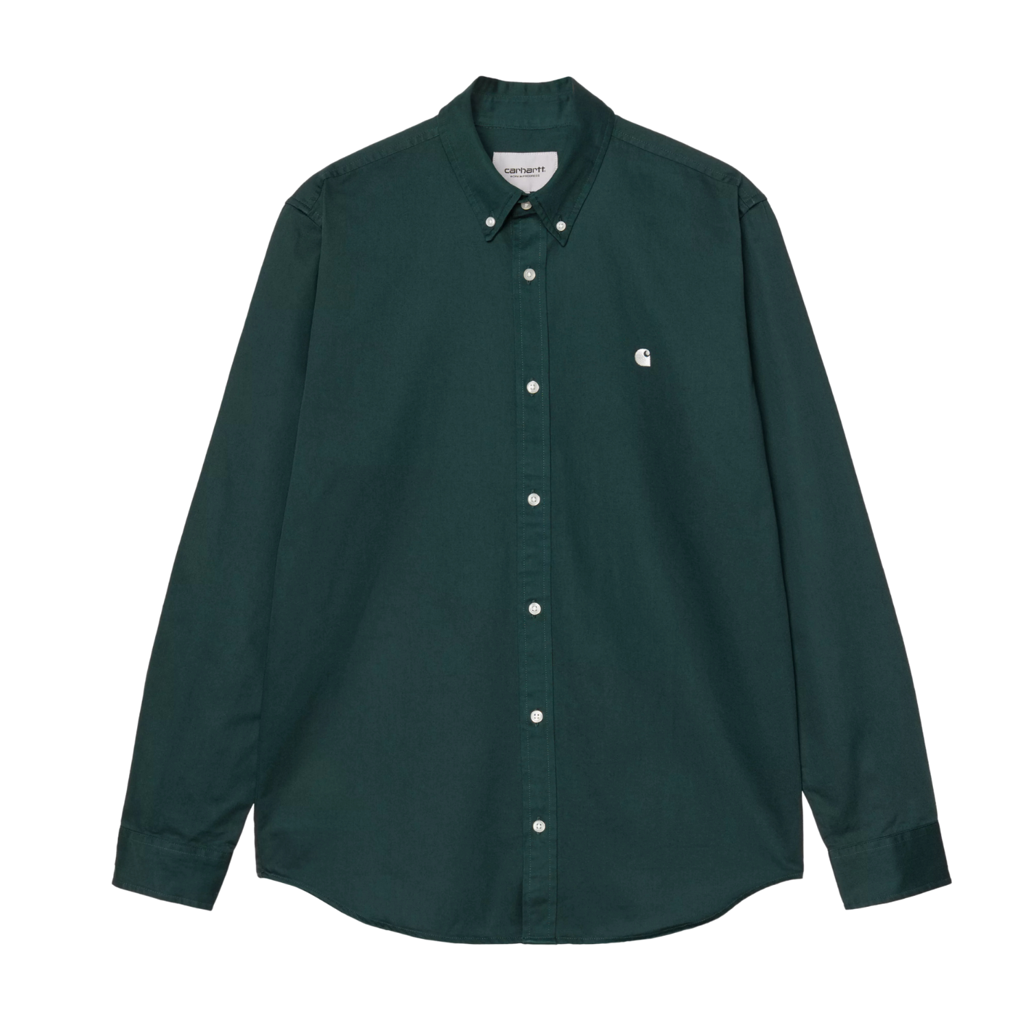 The L/S Madison Shirt is a classic button down created in a midweight cotton twill, with a curved hem and contrast button detailing.