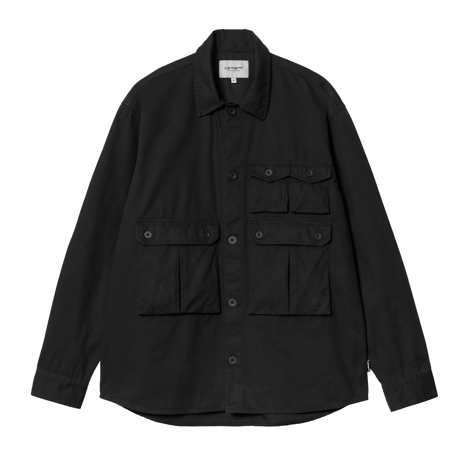The L/S Tracker Shirt is an unlined style made from midweight cotton twill. Dual pockets appear on the chest, and two appear on the front of the item. A pocket also appears on the sleeve. A woven flag label completes the design.