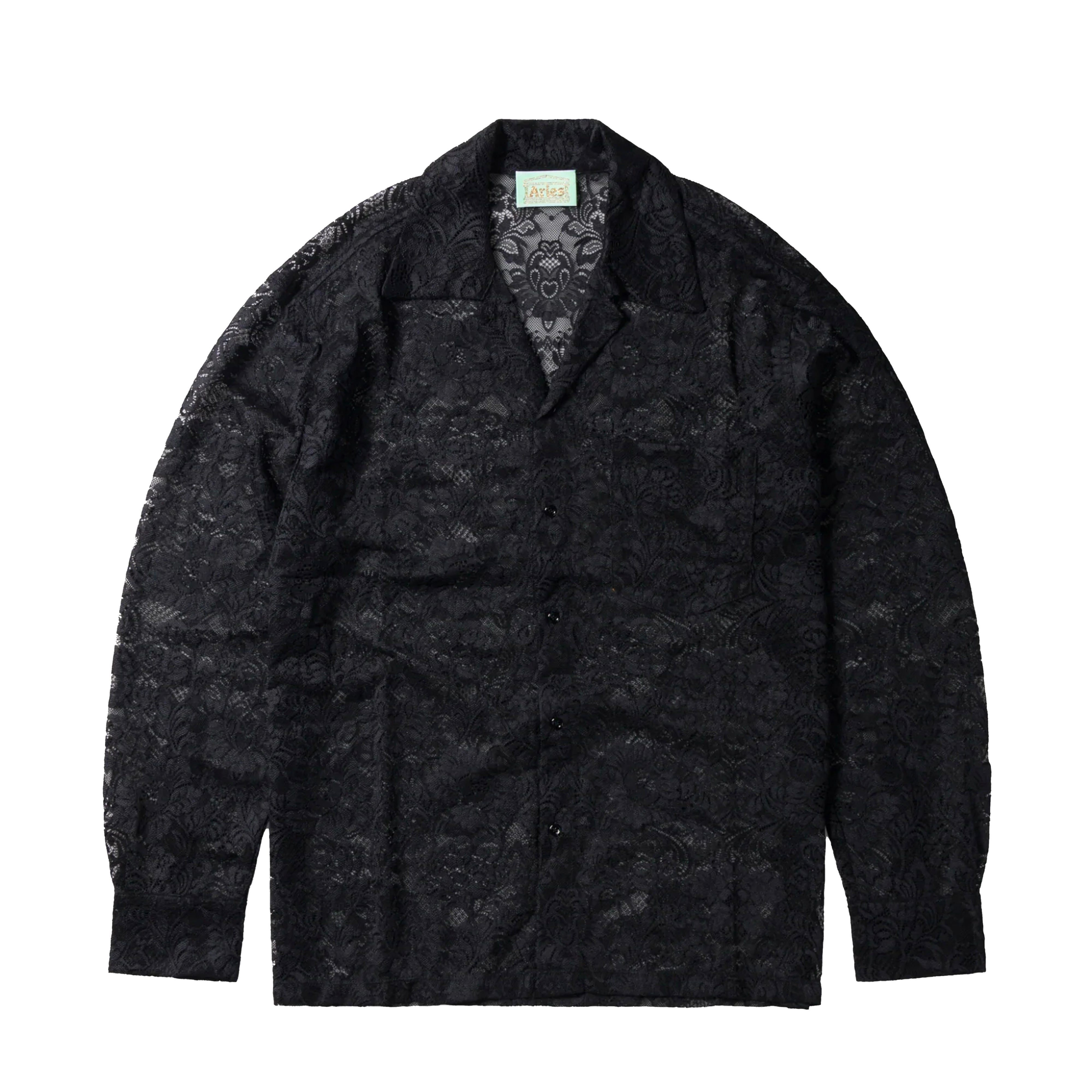 Unisex long-sleeve casual-fit shirt made from Aries custom fleur lace. With a camp collar and patch pocket on the chest. Made in Italy.