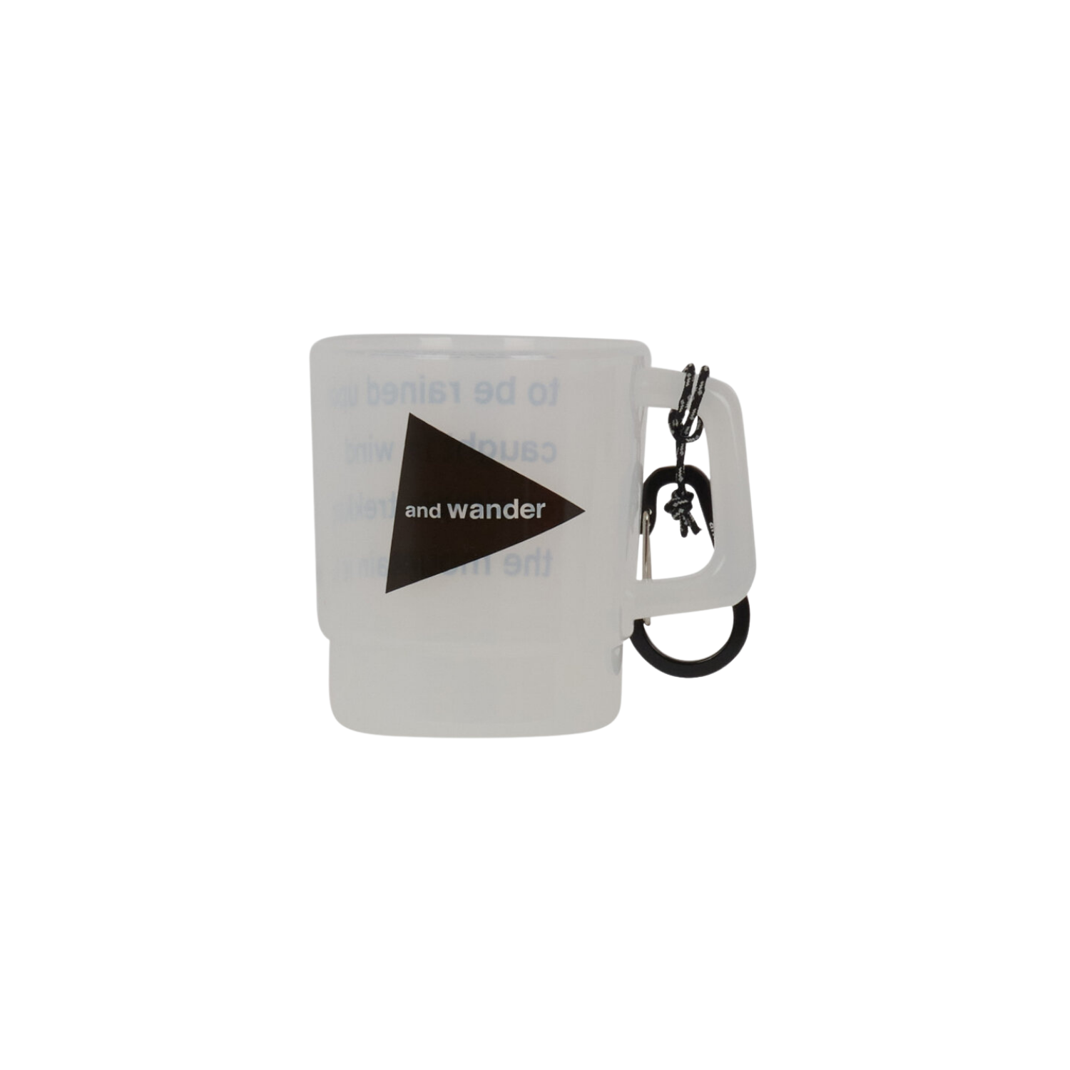 A lightweight polypropylene BPA-free mug with the and wander logo printed on it.