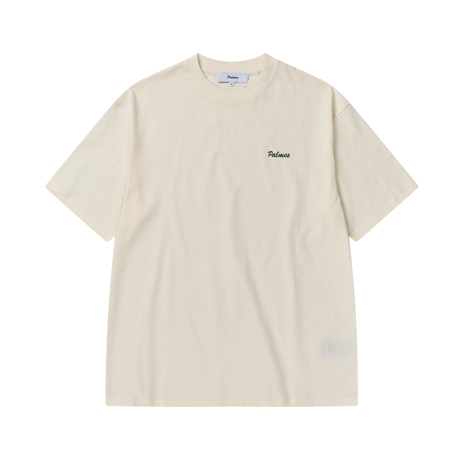 Palmes signature tee, cut from a crisp, elegant cotton that has been pigment dyed for an inherent softness. Screenprinted Palmes signature on left chest. Rib collar. Regular fit. 100% cotton.
