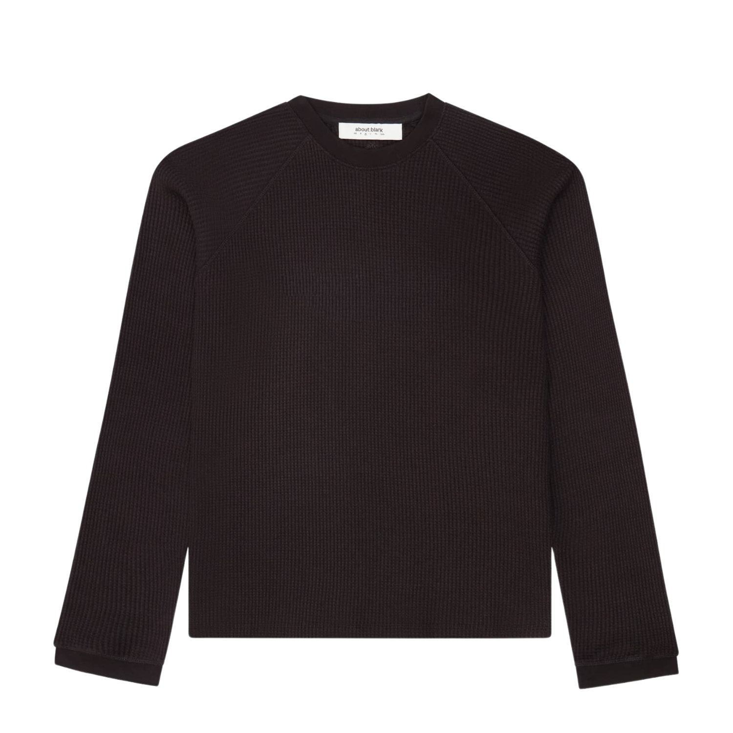 A long sleeve waffle tee built in heavyweight cotton with structured raglan sleeves and contrast stitch detailing throughout. Features a raw edge hem with coverlock finish, 3.5cm rib at cuff, and high-build satin stitch monogram embroidery at the back neck.
