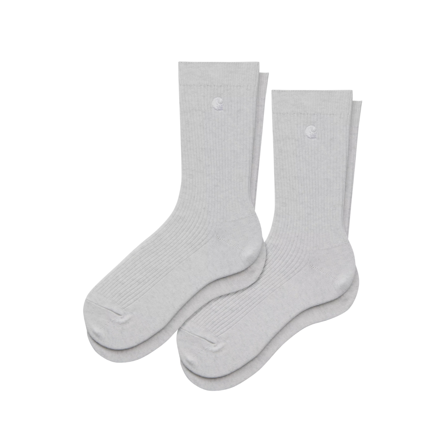The Madison Pack Socks come in a pack of two pairs, and are knit from stretch-cotton yarn. They feature ribbed stitching at the ankles and are detailed with an embroidered 'C' Logo.