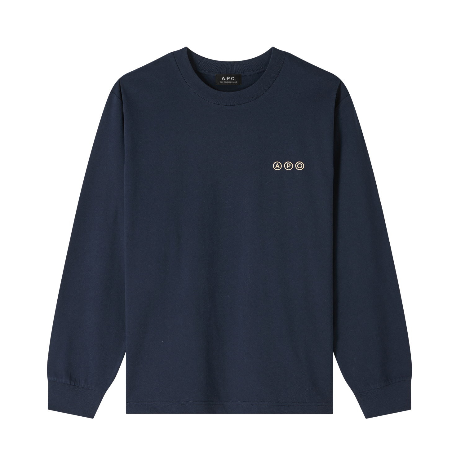 GOTS-certified T-shirt. This long-sleeved t-shirt is made from a soft cotton. It is designed with a round neckline with an APC logo on the chest and a larger print on the back