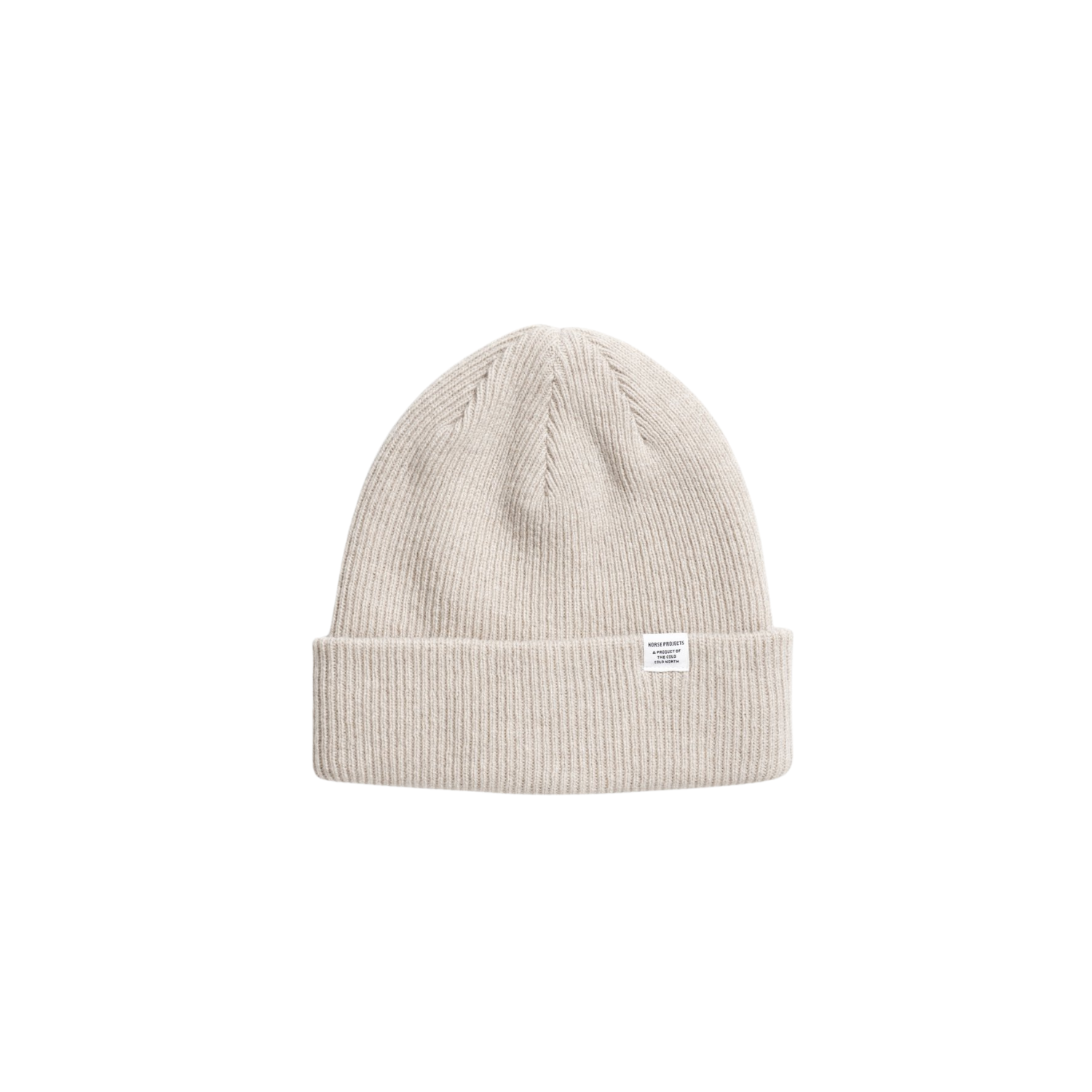 A beanie knitted in a single layer of 1x1 rib in Italian merino lambswool yarn. Finished with a felted N on the fold.