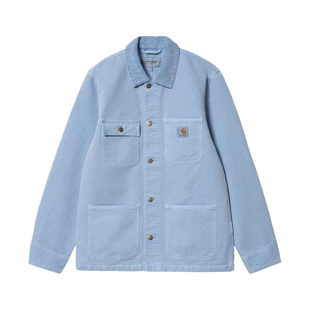 The Michigan Coat is constructed in our 12 oz organic cotton Dearborn Canvas, has a classic chore coat silhouette and is unlined, making it slightly more lightweight and breathable. A corduroy collar and front patch pockets offer tactile touches, while triple-stitch details provide extra durability. 'Faded' versions of the Michigan Coat are pigment-dyed, giving them a washed yet saturated finish and rendering the Square Label murky in the process, while rinsed iterations have a softer feel without compromising on durability.