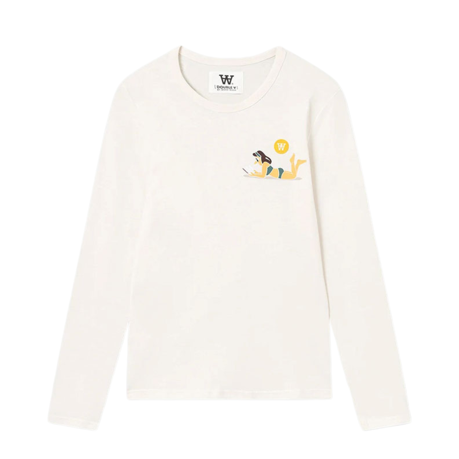 The Jess Sunbather Sweatshirt is a classic crewneck sweatshirt made from 100% organic cotton, featuring a double AA logo and a HuskMitNavn "sunbather" print on the front.