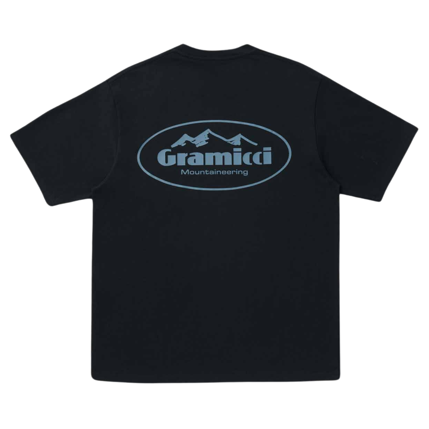 - Gramicci slogan and logo are printed in smaller letters on the wearer's left front and in large letters on the back