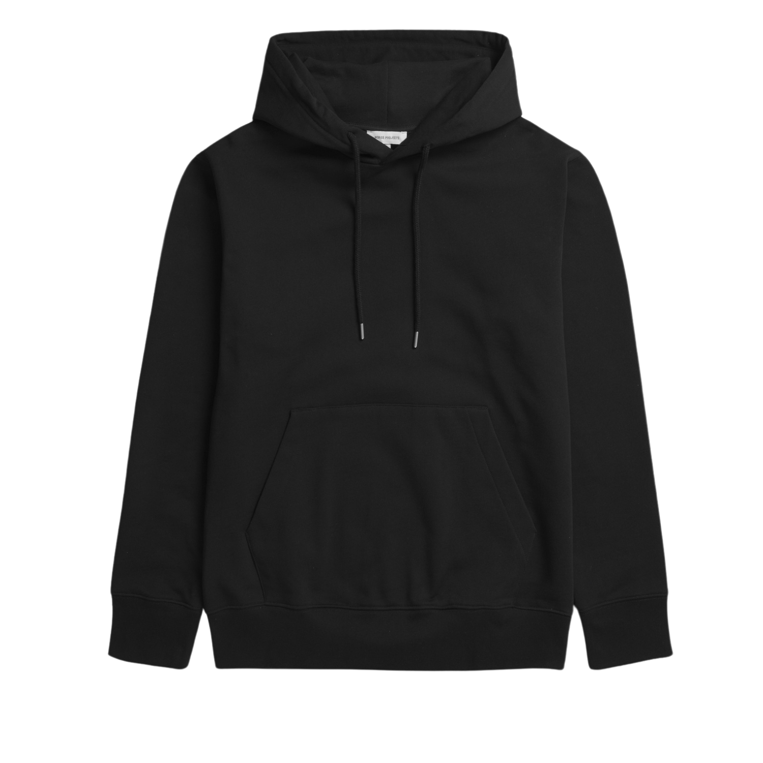 The Norse Standard Hoodie is made from midweight organic cotton loopback terry, offering a regular fit. It features set-in sleeves, an adjustable double-layer drawstring hood with metal aglets, a kangaroo pocket, ribbed cuffs and hem and a branded tab at the side seam.