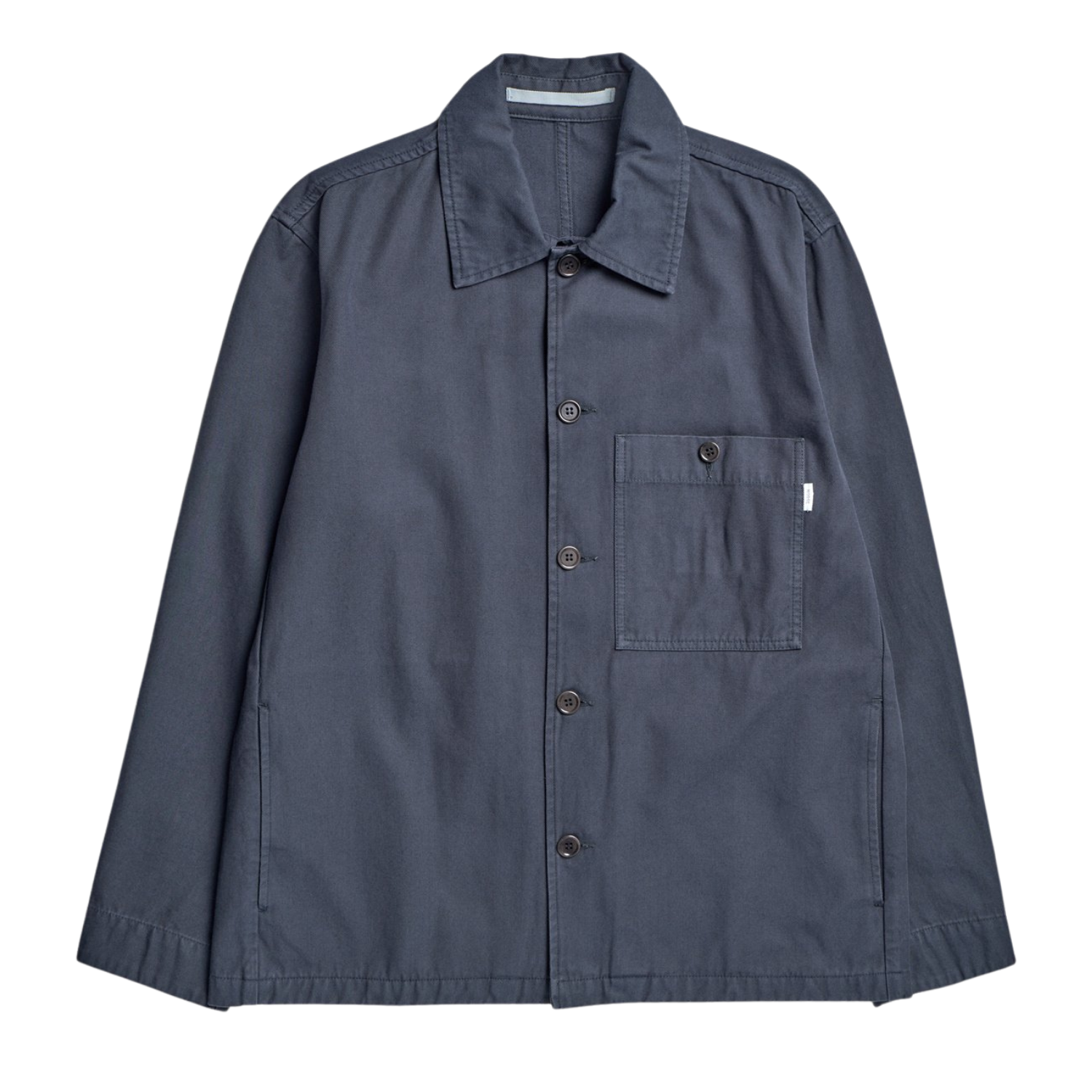 The Norse Standard Twill Overshirt is cut from Italian densely woven twill, offering a clean, defined structure and a straight, boxy fit. It can be worn as an overshirt or lightweight jacket. It features a single patch pocket on the chest, side seam pockets, corozo buttons and branded tab at the chest pocket.