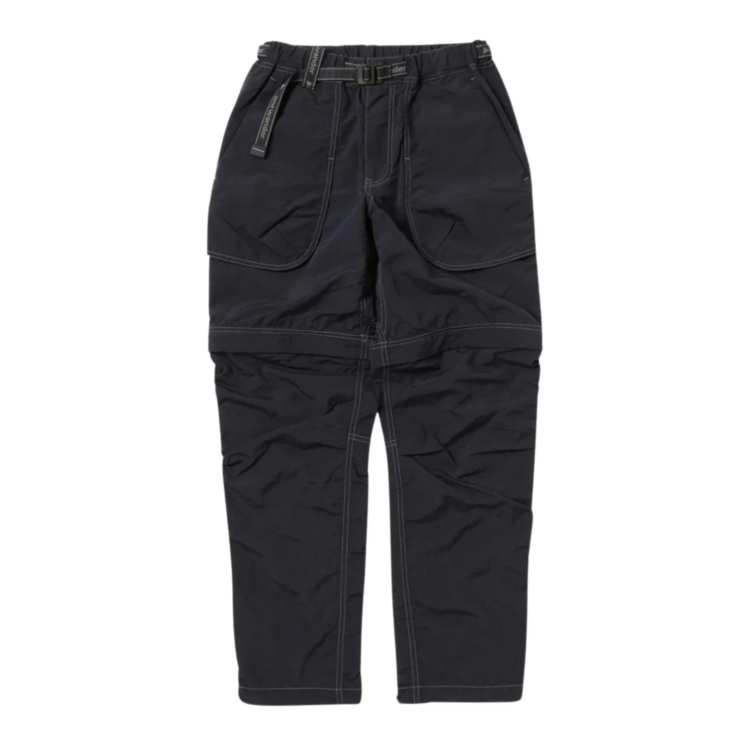 The lightweight nylon taffeta is strong and durable, and is water-repellent and blocks UV rays. The thigh zippers allow you to remove the cuffs and wear them as shorts. The left and right zippers are different colors, so you won't accidentally put them on the wrong way. The vertical zipper at the cuffs can be fully opened, allowing you to put on and take off the pants while wearing shoes, and opening it slightly allows for ventilation. Reflective stitching is used in some areas to increase visibility at night.