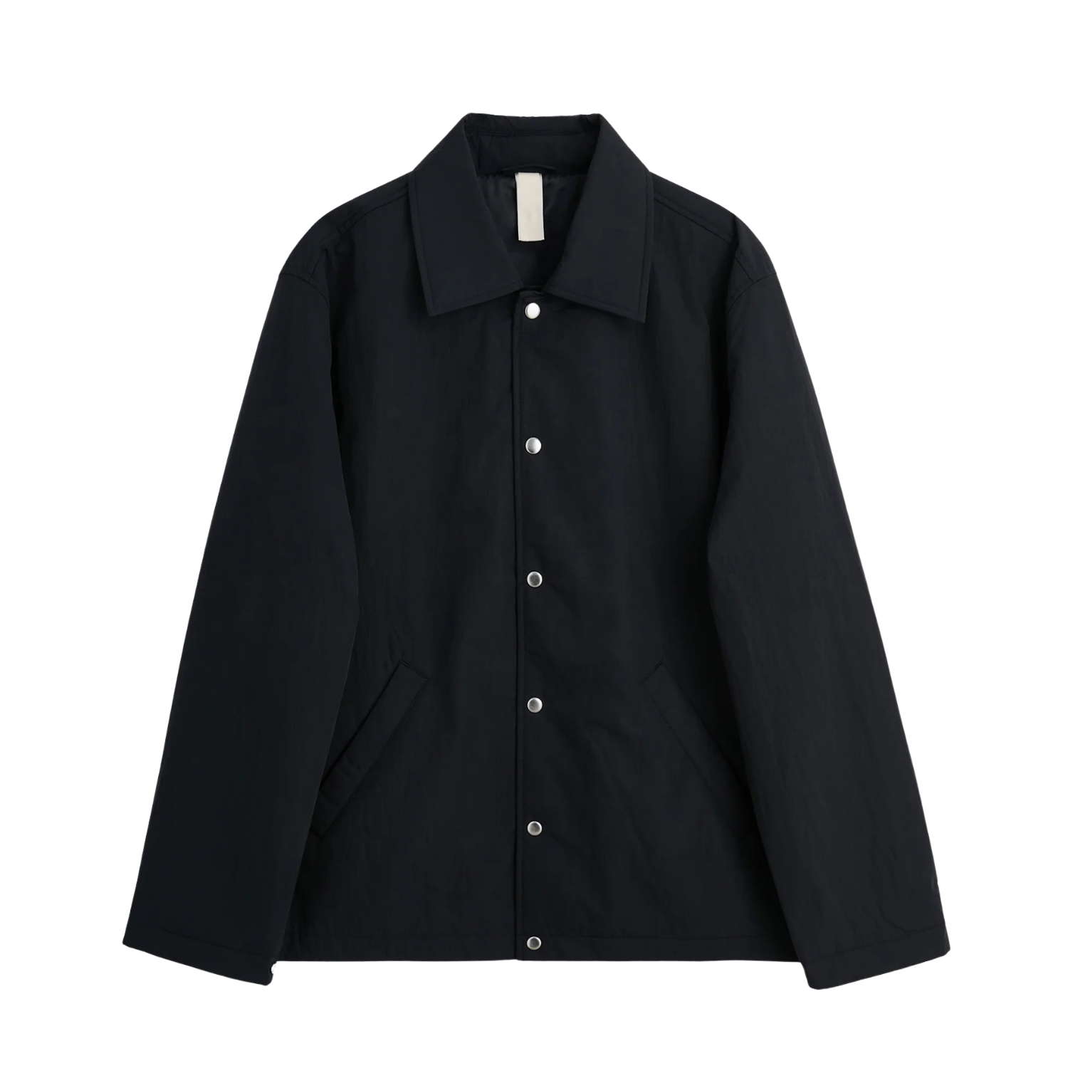 A modern update to the classic coach silhouette, this padded jacket blends utility with clean, understated design. Constructed from 100% recycled, water-repellent nylon, it offers both sustainability and weather resistance. The jacket is insulated with Primaloft® Gold, delivering superior warmth without bulk, making it an ideal lightweight layer for transitional weather.