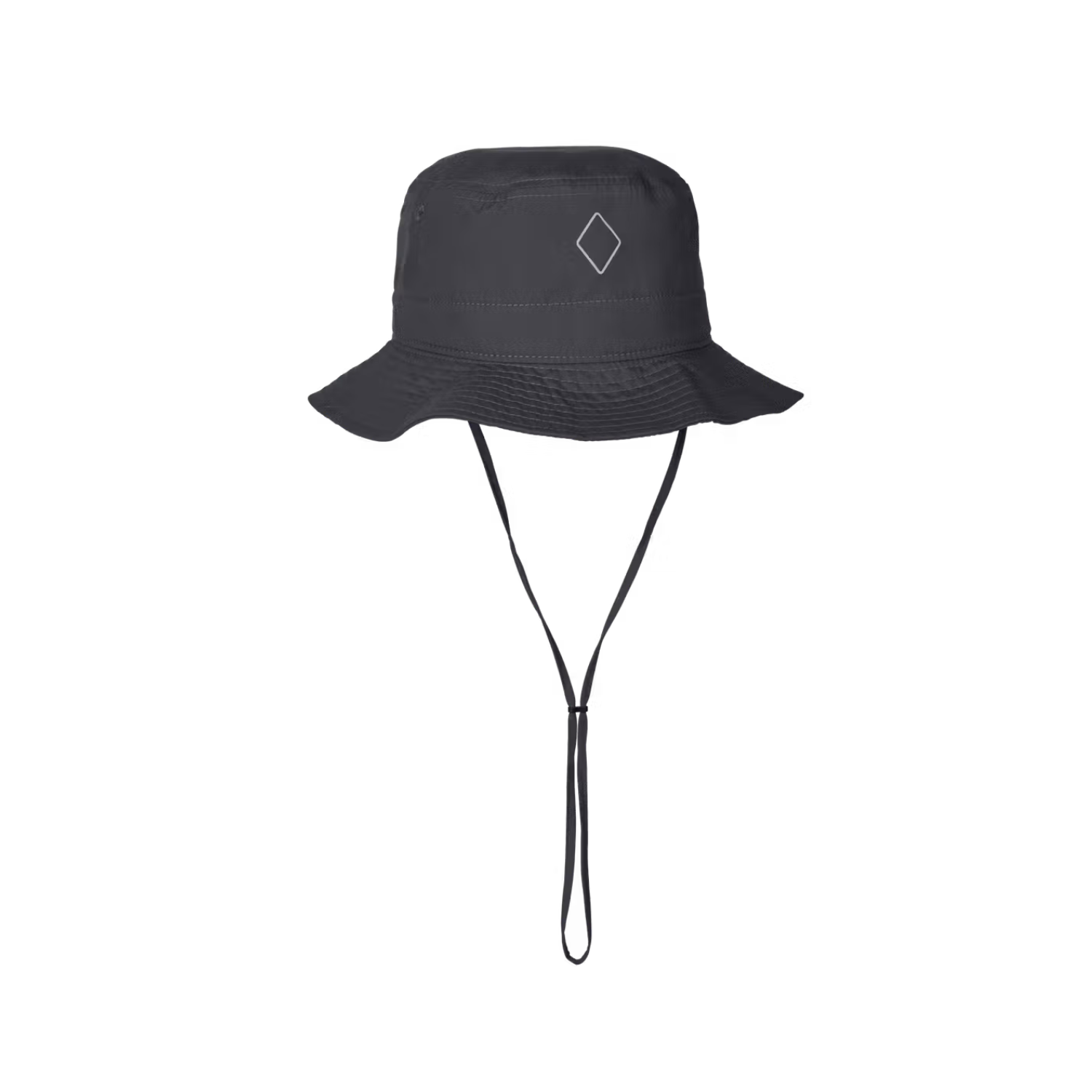 The Tech Bucket Hat is a weather-resistant accessory designed for protection in light rain and sun. Made from 100% nylon with a water-repellent finish, it blends function with everyday styling. An adjustable elastic cord at the back ensures a secure fit, while a removable neck strap offers added stability in windy conditions or while commuting. Reflective logos on the front and back provide subtle visibility for low-light moments.