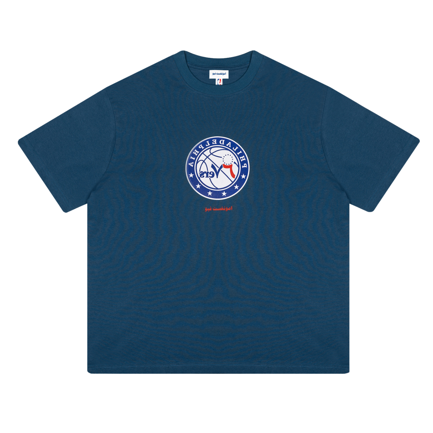 An everyday essential made from 220gsm cotton with a sturdy yet comfortable feel. Pre-washed for a soft, broken-in finish from the first wear. Features the Philadelphia 76ers logo reimagined in Arabic alongside the amongst few Arabic mark. Finished with both NBA and amongst few woven neck labels.
