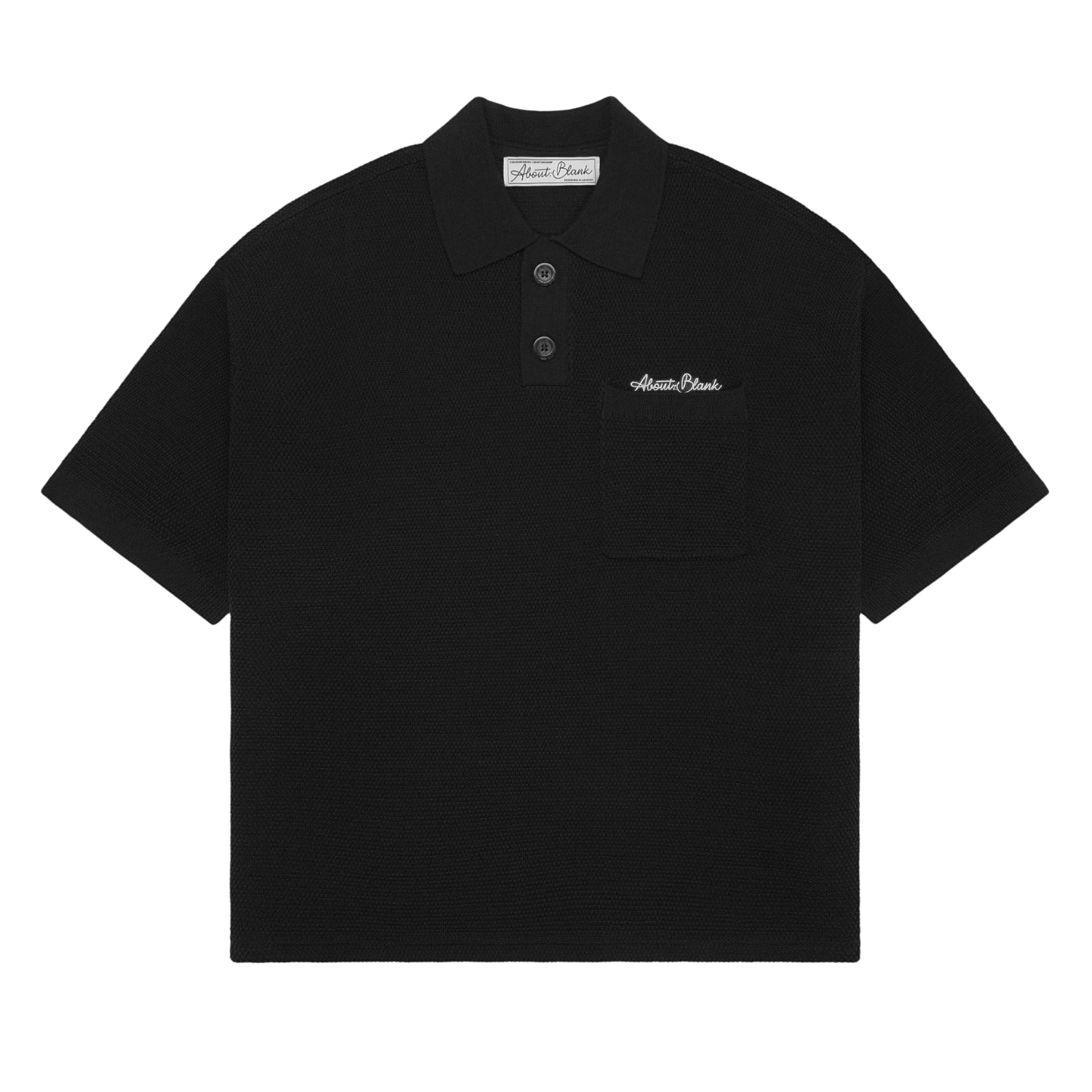A knitted polo shirt crafted in a 12-gauge pique stitch with a dry, structured hand feel. Cut in a relaxed silhouette with a ribbed collar and sleeves, it’s finished with an oversized patch pocket featuring contrast brand satin-stitch embroidery and tonal underlay.
