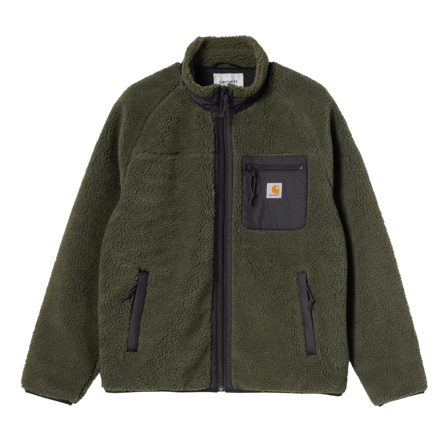The Prentis Liner is a midweight style constructed from polyester pile. While some iterations of the Prentis Liner feature an allover block color, others have a jacquard outer shell depicting a camouflage design, or the baroque-inspired Verse motif. Inside, the garment is lined with mesh at the body and nylon taffeta at the sleeves. It is detailed with a funnel neck, contrasting nylon taffeta chest pocket and woven Square Label.