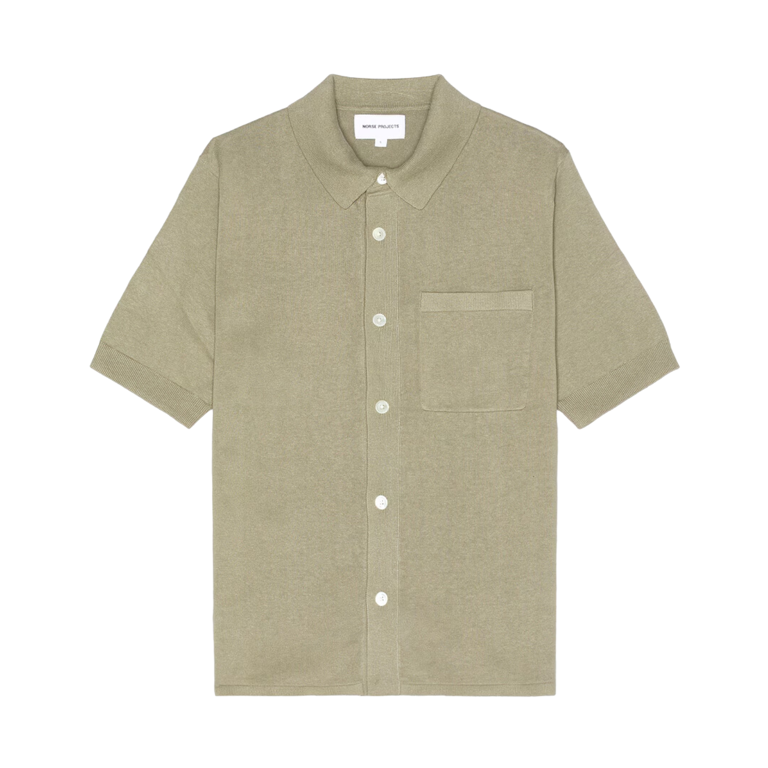 The Rollo Cotton Linen SS Shirt is knitted in a cotton/linen blend yarn which gives it a cooling comfort. The natural properties of the linen fibres allow heat to escape, making it the perfect choice for summer. It is knitted in plain jersey and features a knitted collar, a chest pocket, single ribbed cuffs and a hem finished in an interlock stitch.