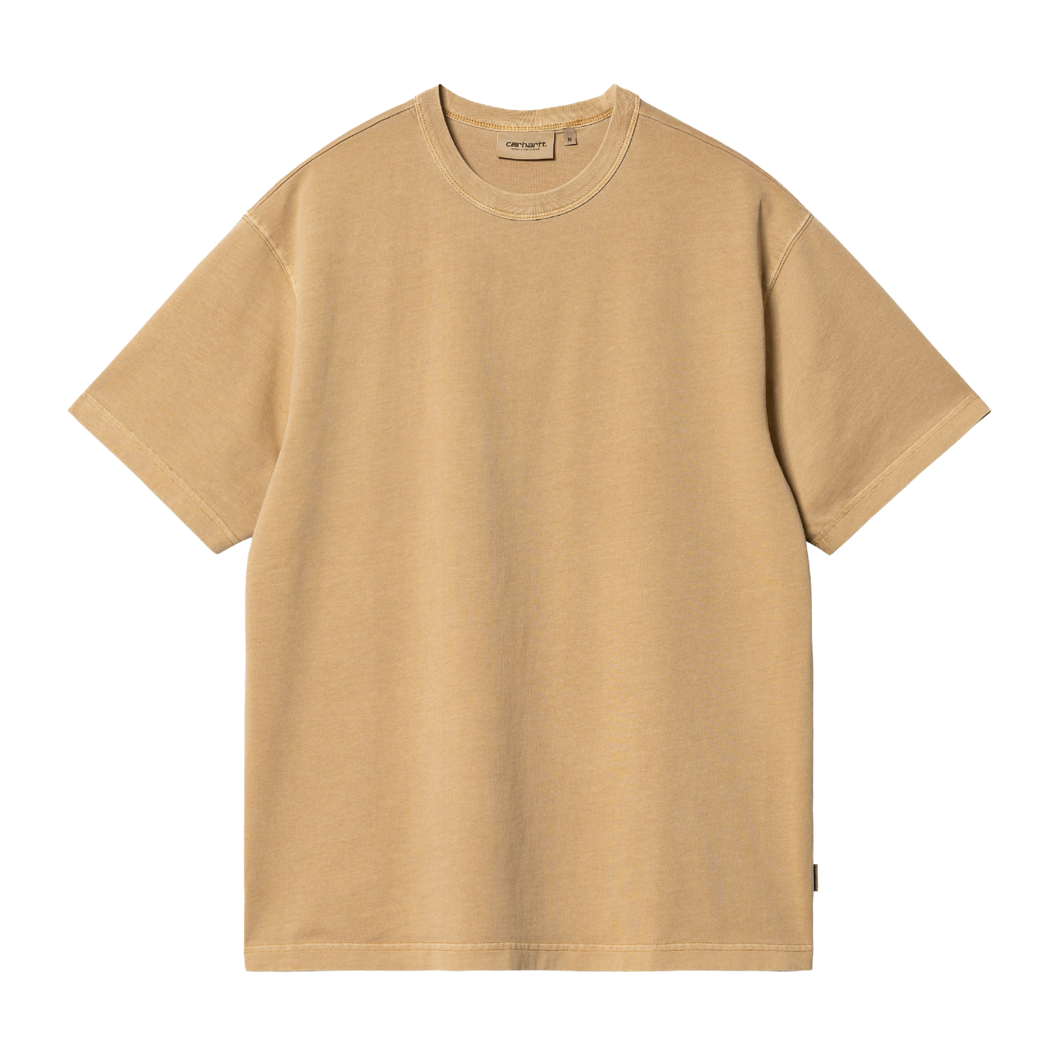 The S/S Taos T-Shirt is woven from midweight organic cotton jersey in a loose fit. It has also been garment-dyed, resulting in a softer feel and complex color configuration. A woven flag label completes the design.